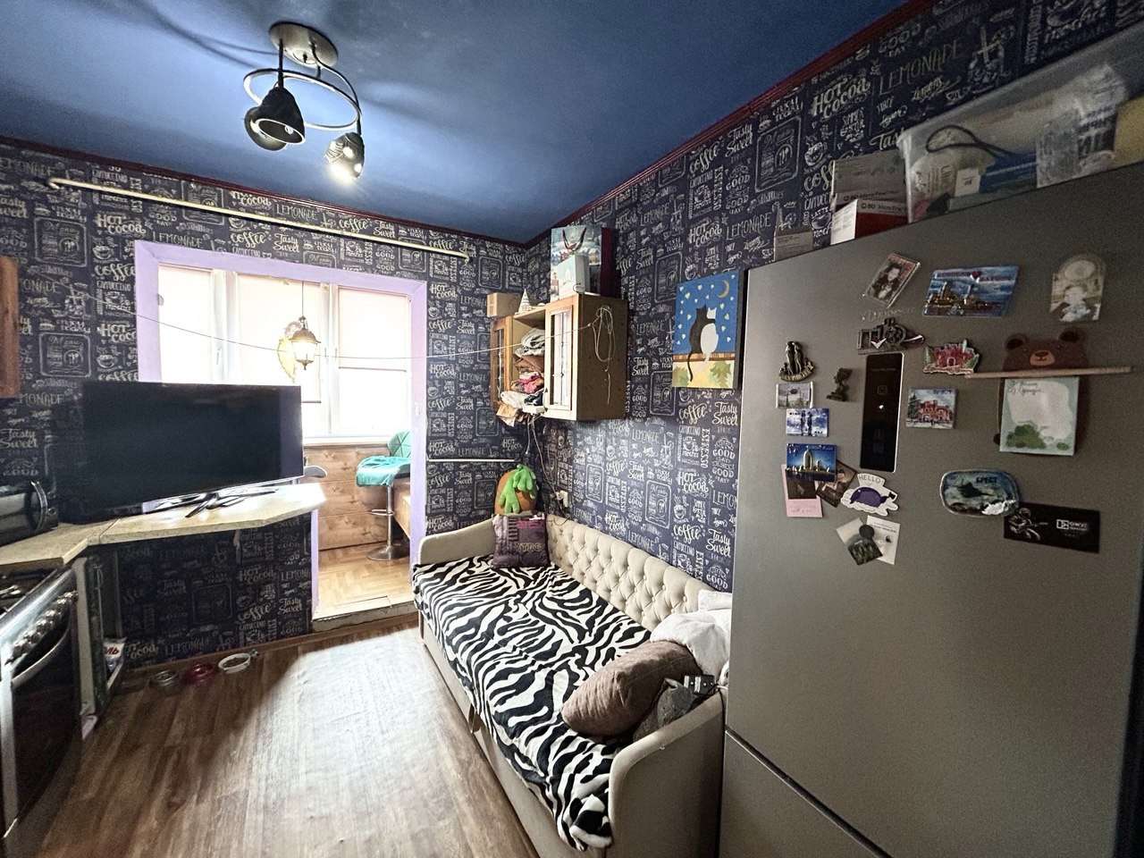 Пол в квартире – ламинат, в кухне - линолеум. Потолки – окрашены. Стены в квартире оклеены обоями. Санузел раздельный. Окна – стеклопакеты ПВХ. Металлическая входная дверь.