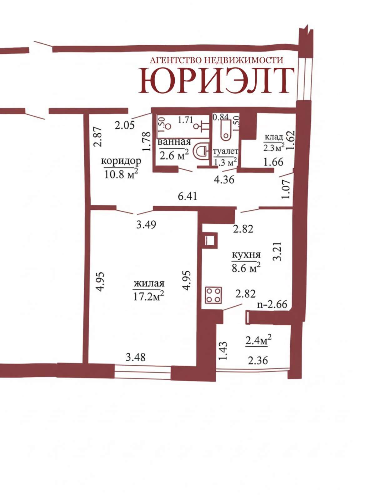 кухня 8.6 м2. Одна лоджия 2.4 м2 застеклена .