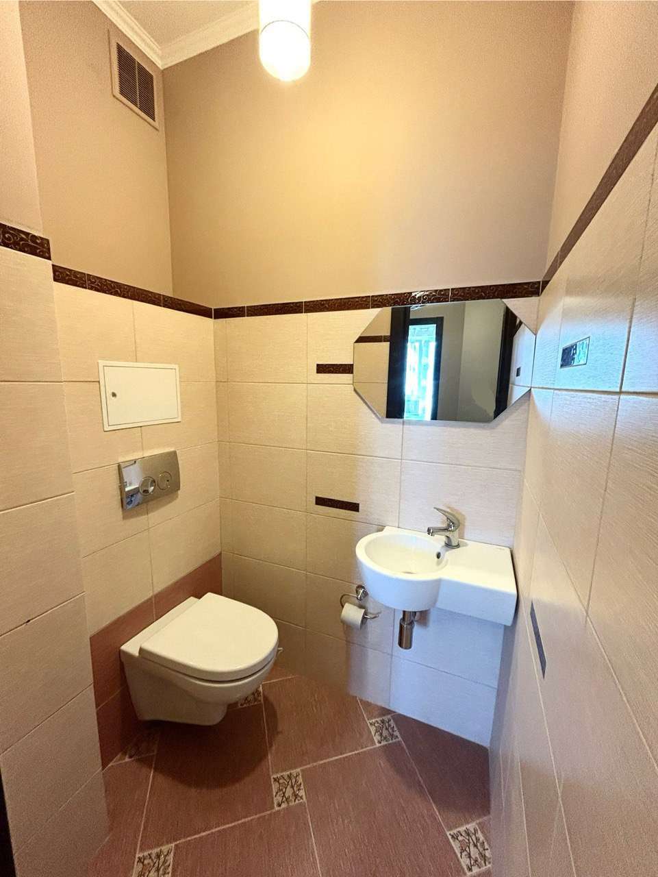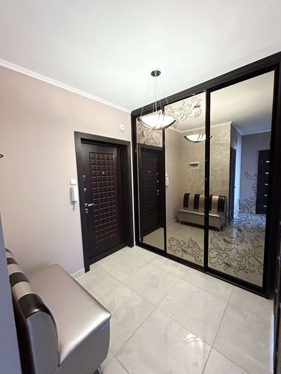 Пол в комнате – ламинат, в прихожей и кухне - керамогранит. Потолки – окрашены, в ванной - натяжной. Стены в квартире выровнены и окрашены. Санузел раздельный, облицован плиткой. Окна – стеклопакеты ПВХ. Металлическая входная дверь, межкомнатные двери в одном стиле.