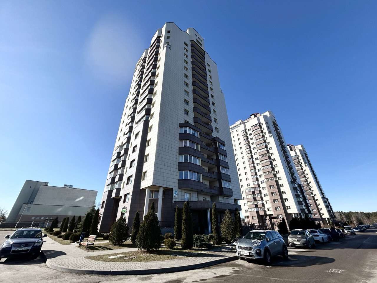Возле дома автопарковка и детская игровая площадка.