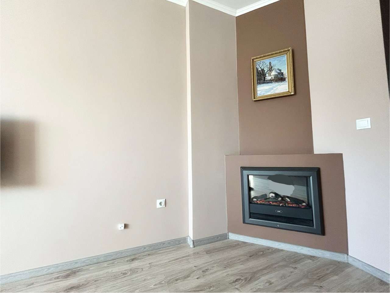 В комнате установлен электро-камин с функцией обогрева.