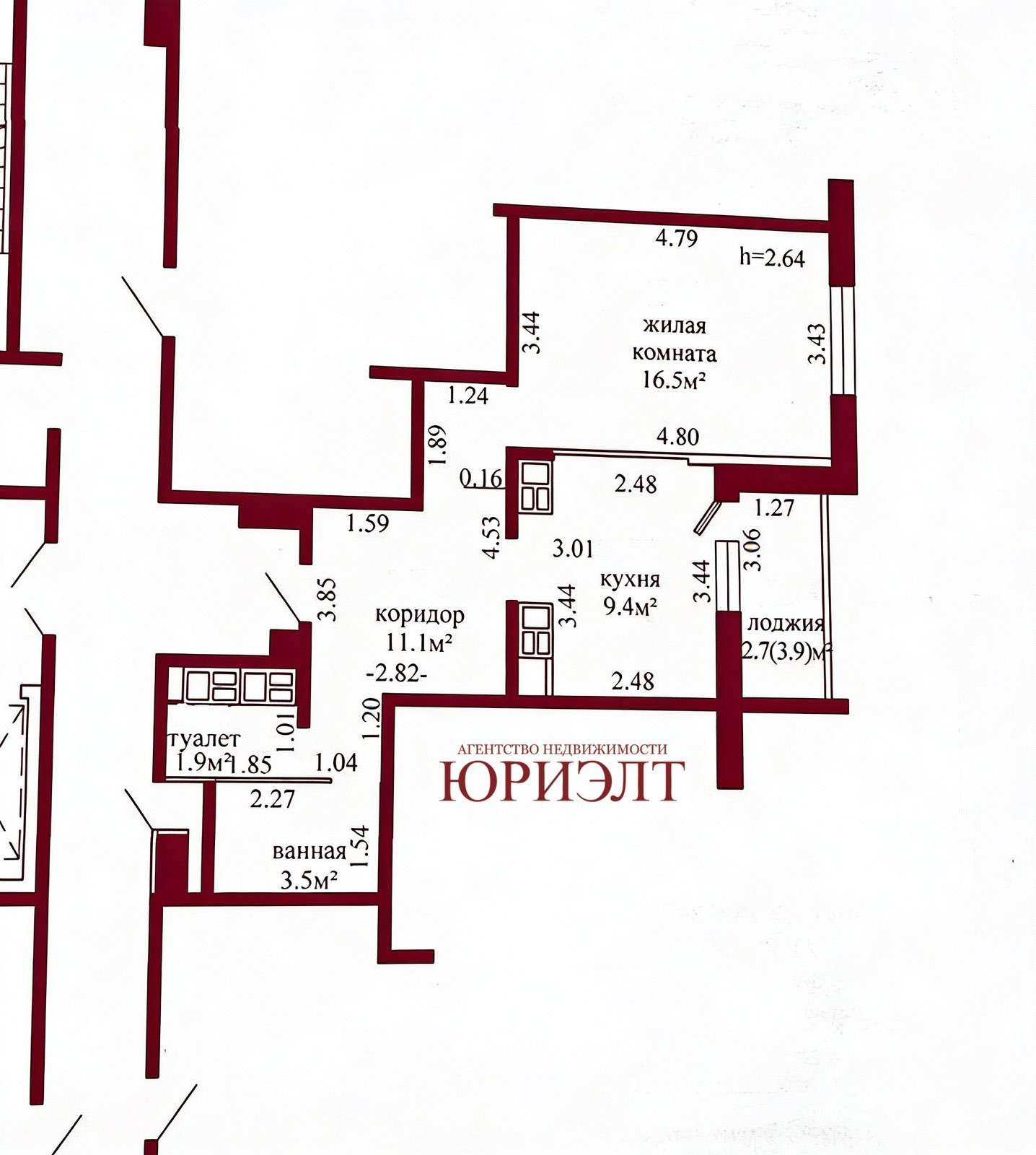 просторная кухня 9.4 м2. Одна лоджия 3.9 м2 застеклена .