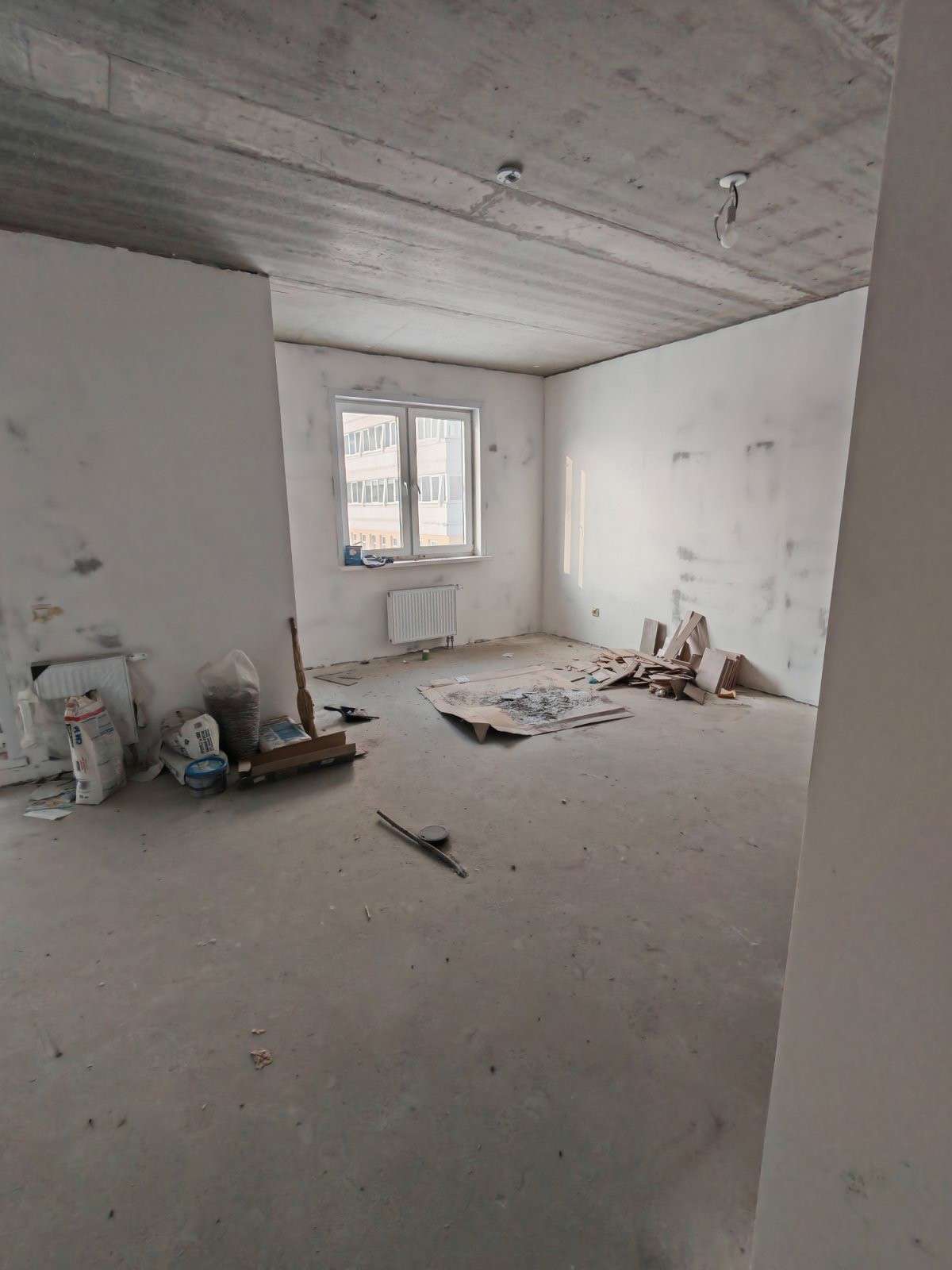 4 этаж 19-тиэтажного дома 2020 года постройки, материал стен – современные бетонные конструкции. Общая площадь 42.7 кв.м., жилая 36.9 кв.м. Окна – ПВХ. Сан. узел совмещенный, облицован плиткой. Материал полов – стяжка.
