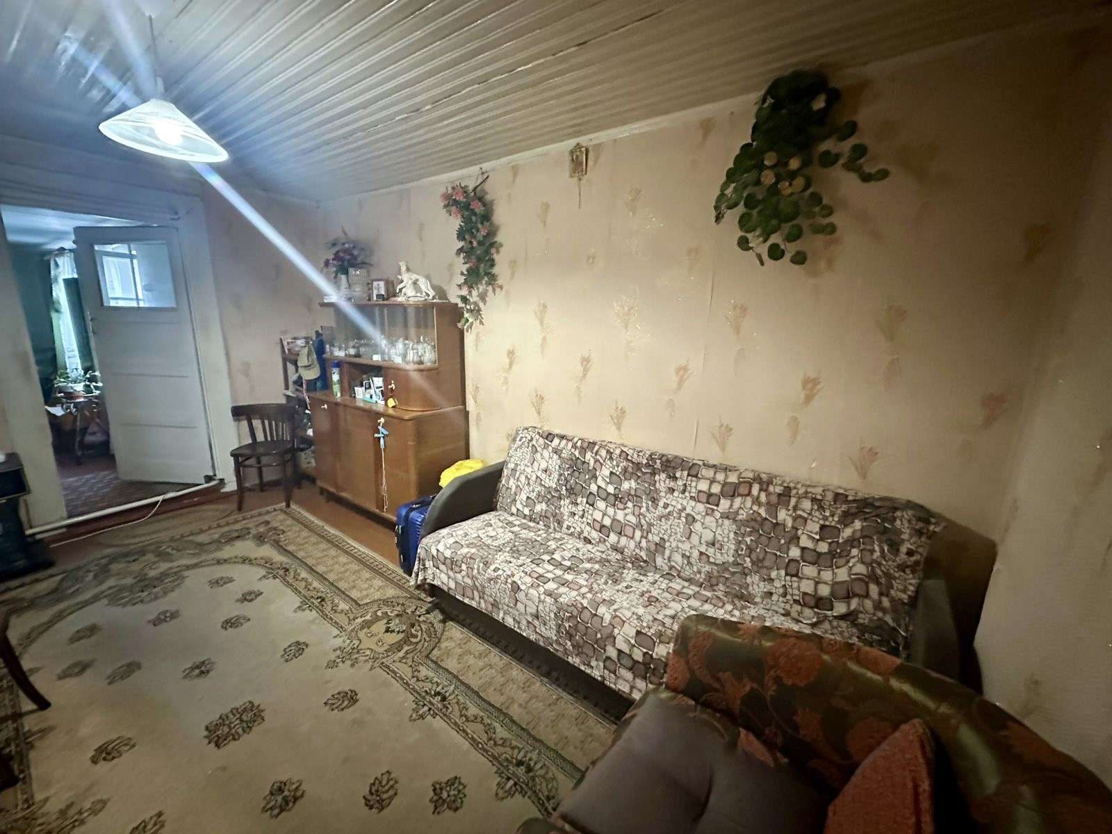Дом деревянный, крыша шифер, окна ПВХ и дерево. Вода в доме, электричество 220 вольт, отопление на газу.