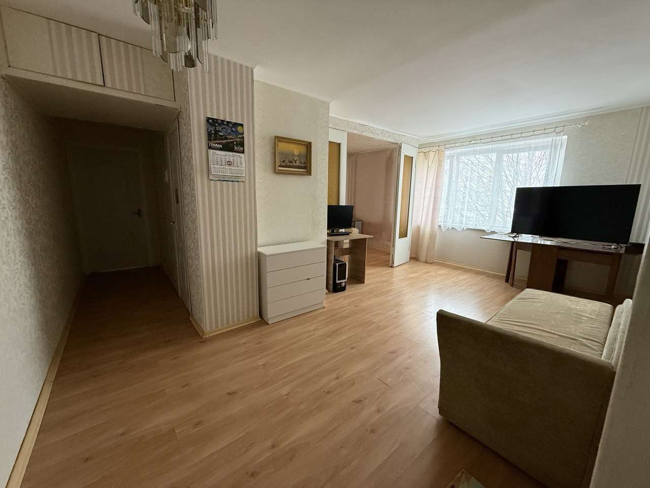 Квартира с косметическим ремонтом, на полу ламинат, в с/у плитка.