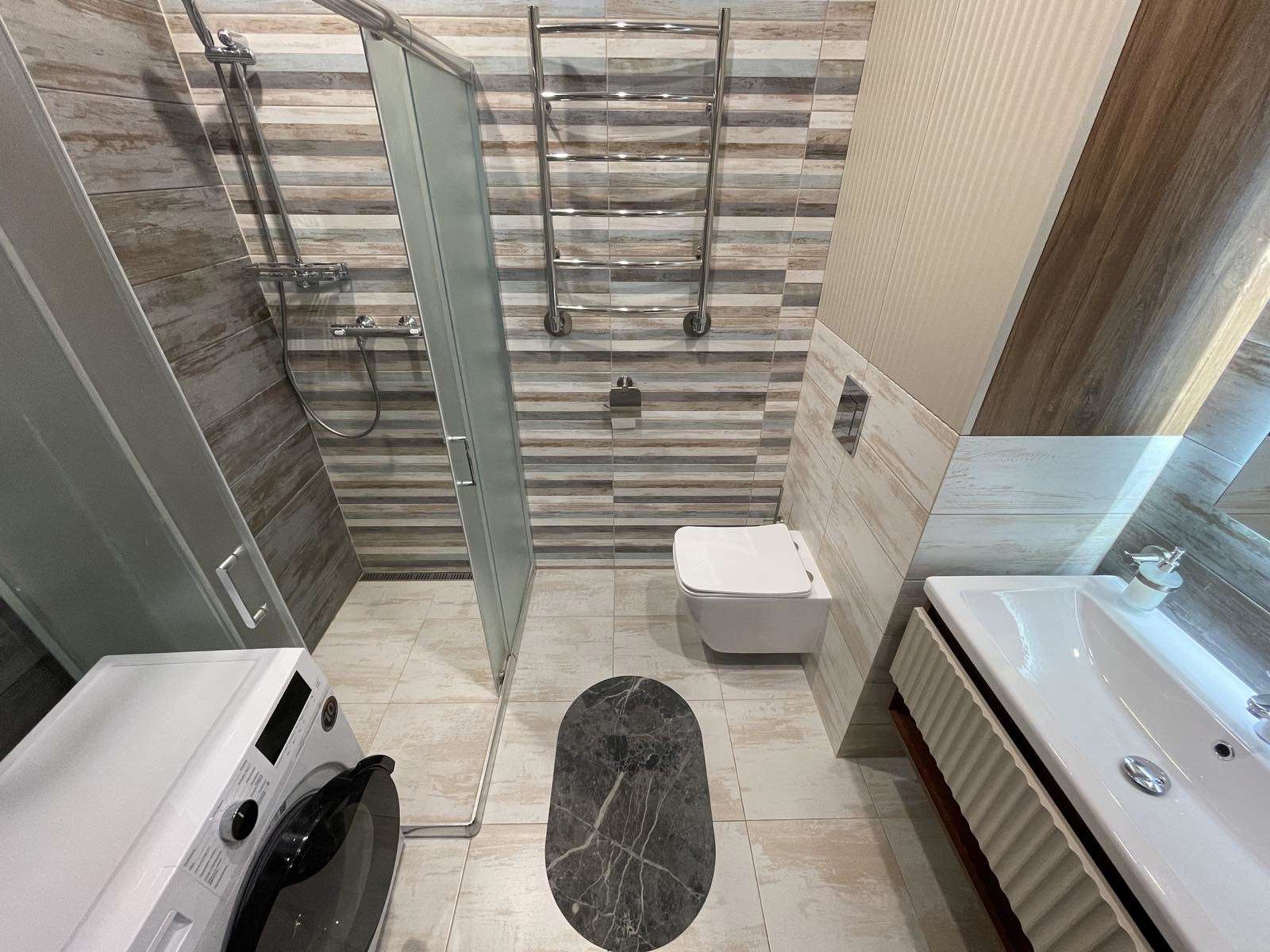 По всей квартире премиум ламинат с высокой влагостойкостью Pergo Skara. Установлена сантехника фирмы Grohe, установлен бойлер на случай отсутствия горячей воды. В санузле предусмотрен гигиенический душ Grohe, в упаковке, быстрая установка. Кухня со встроенной новой техникой Beko (вар.панель индукция, посудомойка, микроволновка, вытяжка, духовой шкаф), холодильник Beko полный no frost высокий , двухкамерный, фасады акрил, фурнитура Blum. Установлен кондиционер. Новый смарт телевизор LG 55 дюймов, инверторная стиральная машина Beko. Вся техника 24г.в. Все техпаспорта. В спальне -кровать массив сосны. Квартира продается со всей мебелью и техникой. Отличный вид на город.