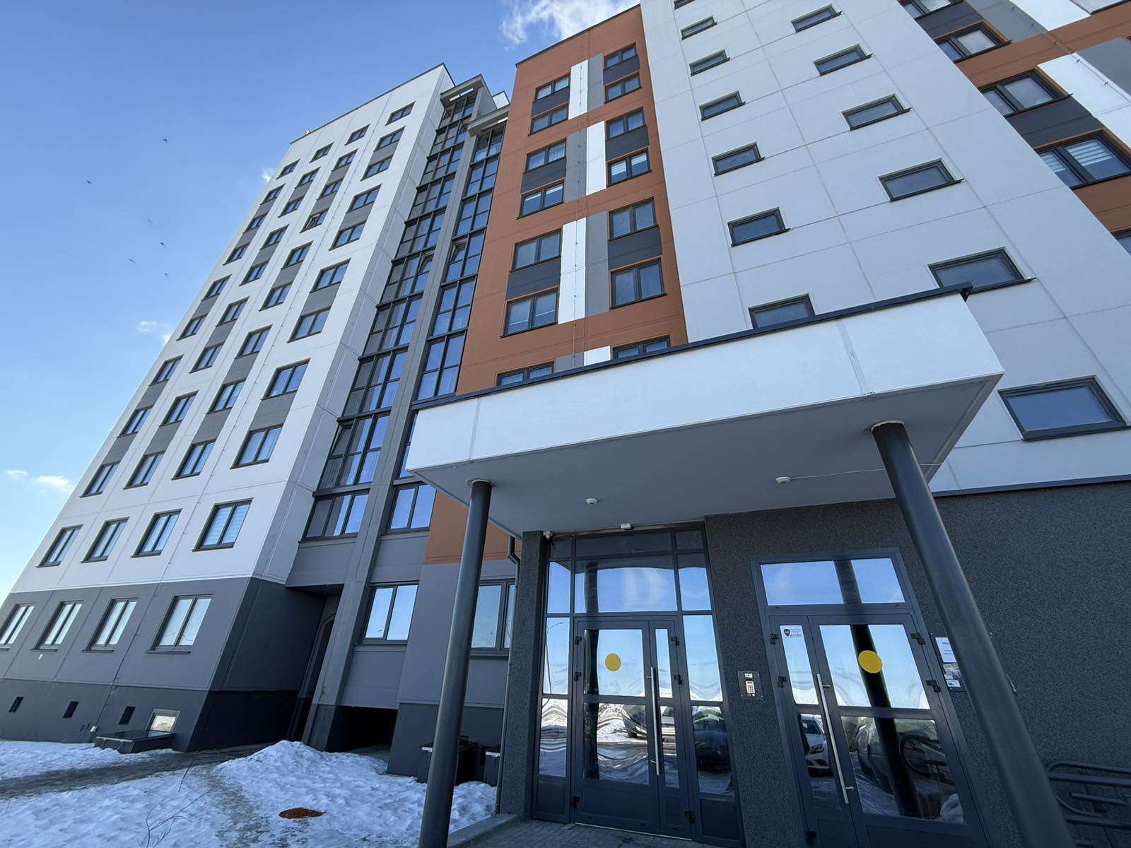 2‑комнатная квартира без отделки в новом доме 2025 года постройки по адресу: г. Гродно, ул. Ольги Санфировой, д. 3, микрорайон Грандичи. Общая площадь – 55,9 м², жилая – 28 м², кухня – 8,9 м². Квартира расположена на 9 этаже 11‑этажного панельного дома с электроплитами, окна выходят во двор.