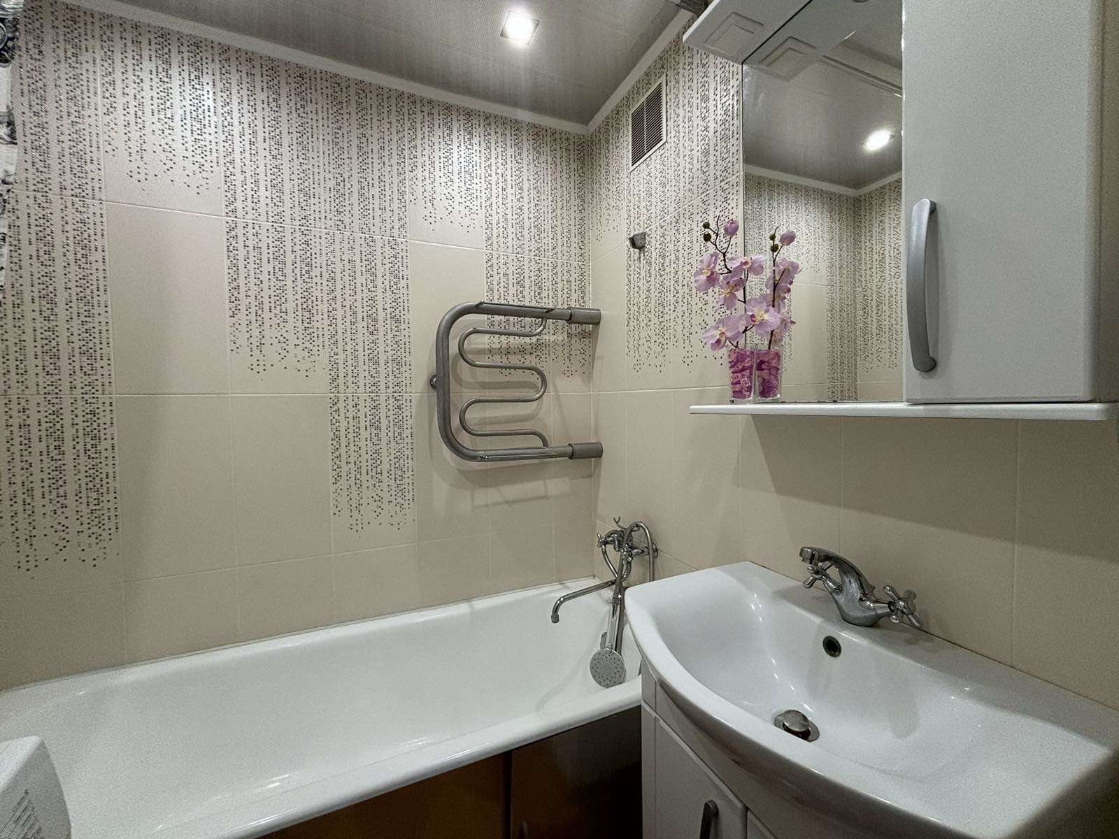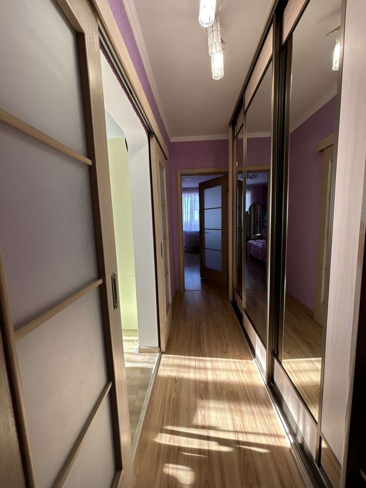 Квартира продается частично с мебелью и с техникой . Все выдержано в едином стиле .Натяжные потолки на кухне. Уютная современная кухня с электрической плитой, вытяжкой и холодильником. Продуман и оборудован коридор. Зеркальный шкаф увеличивает пространство.