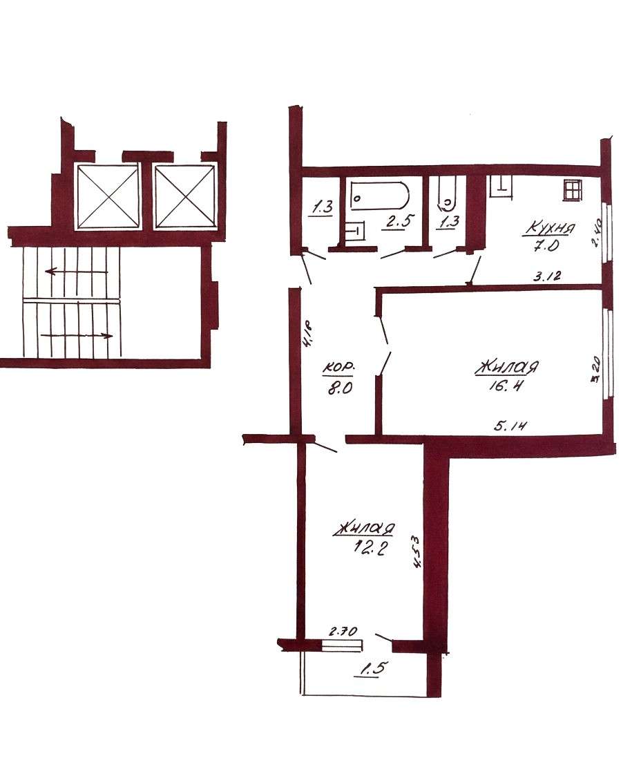 Параметры квартиры: общая площадь- 48,7 кв м жилая площадь- 28,6 кв м, кухня-7 кв м.