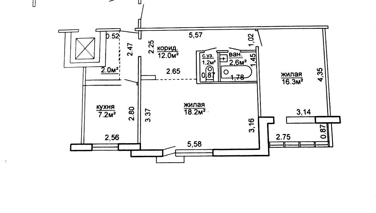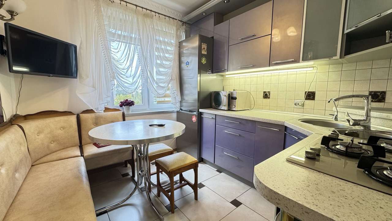 Отличный вид из окон. Общая площадь квартиры составляет 60 м2, жилая- 34,5 м2, кухня- 7,2 м2.