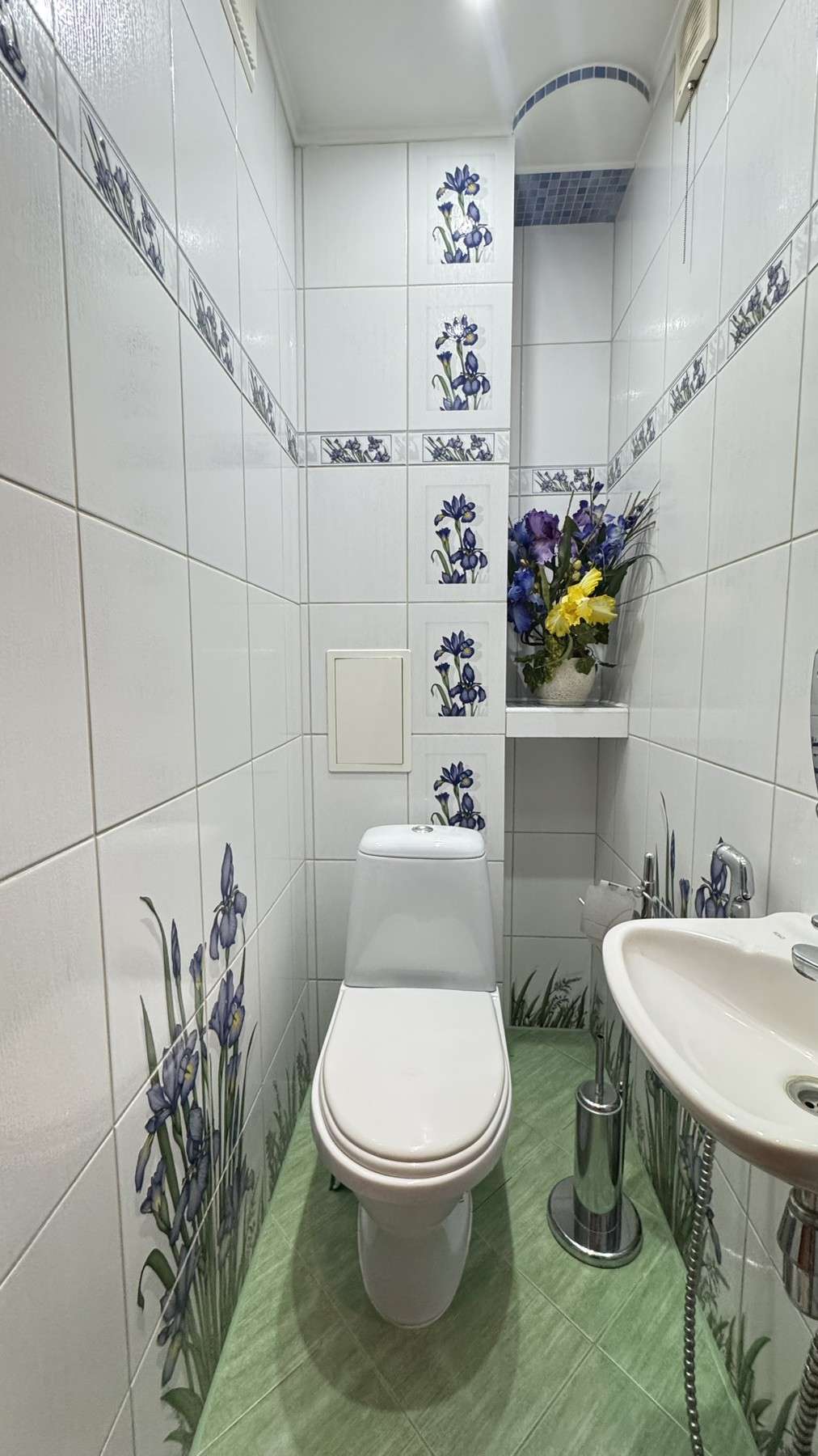 Санузел раздельный, установлен умывальник и гигиенический душ. С/у и ванная комната облицованы плиткой, где произведена полная заменена сантехники!