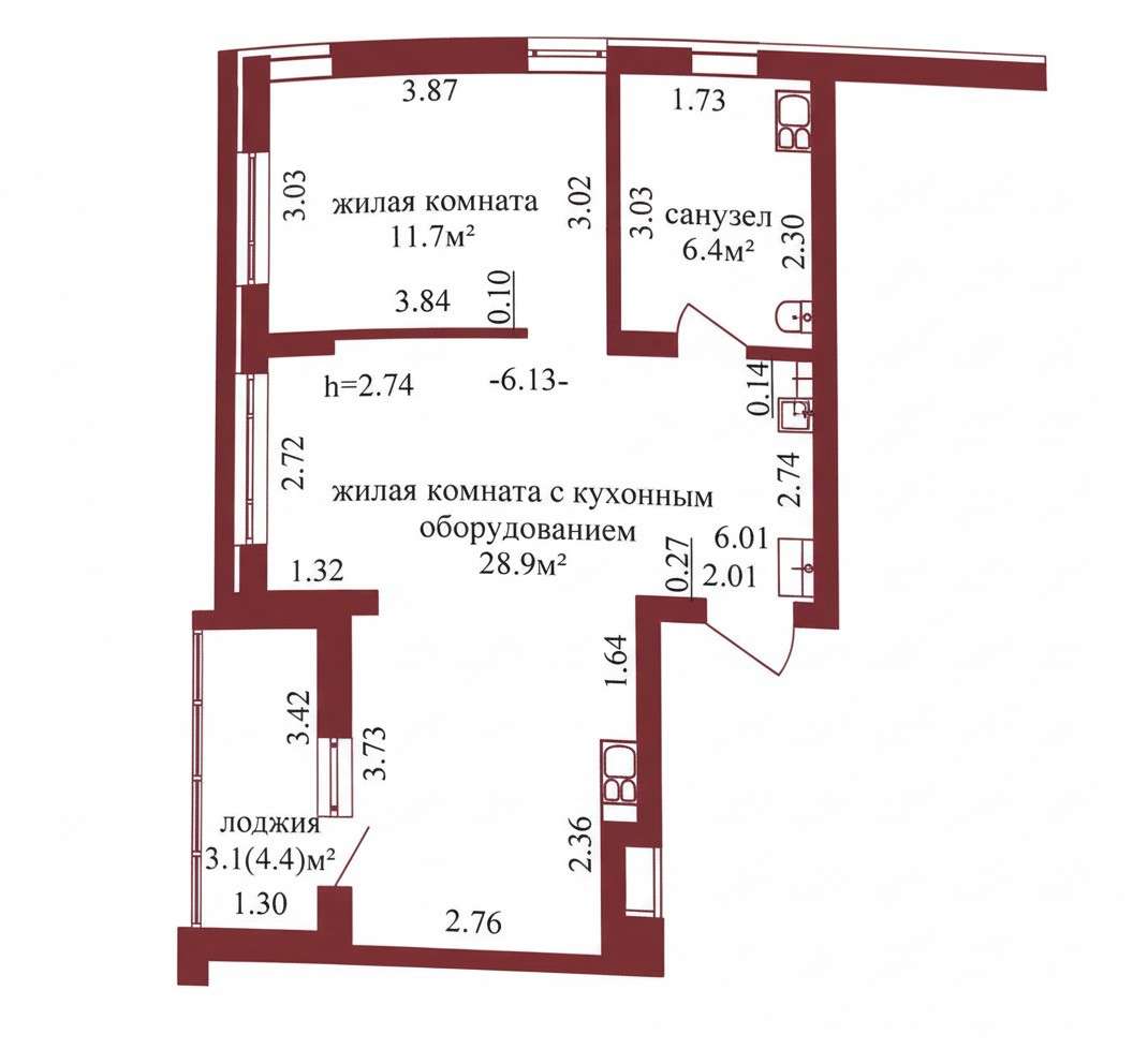Двухкомнатная квартира со строительной отделкой в ЖК «Купальский»