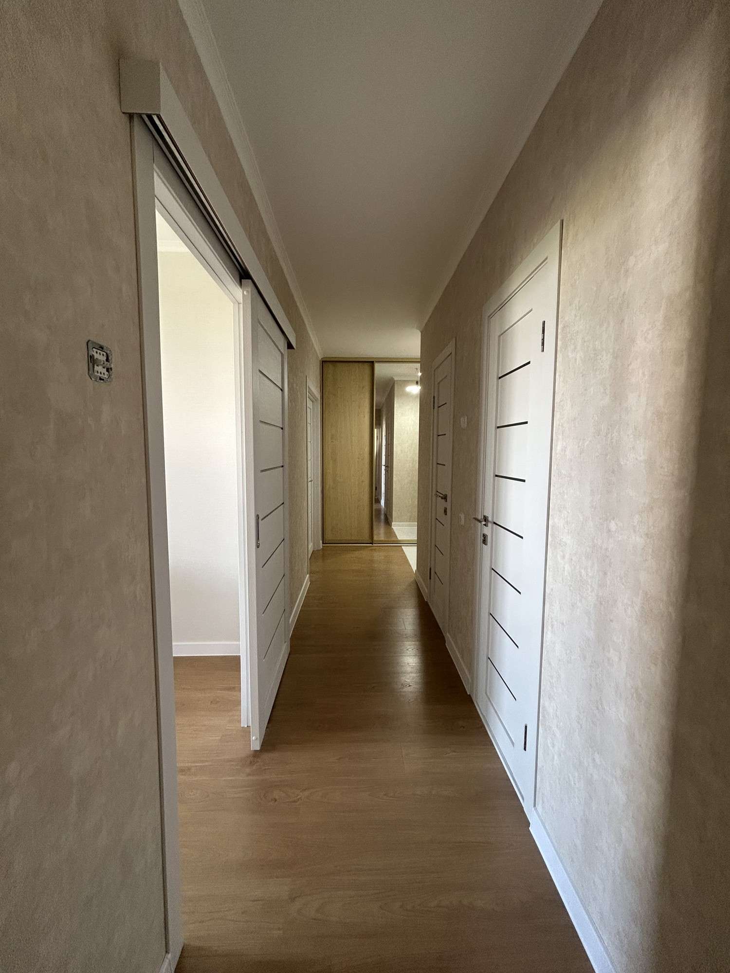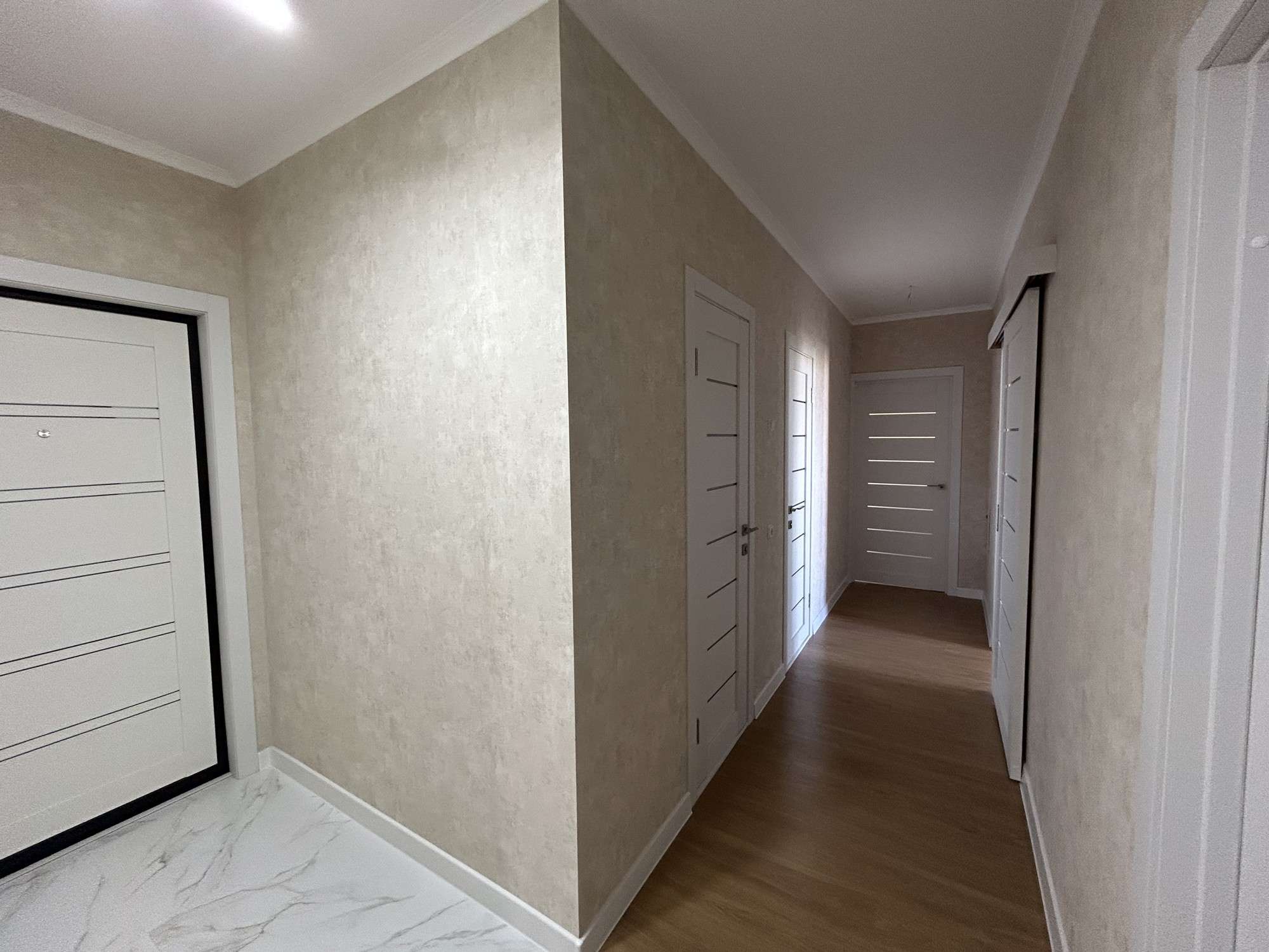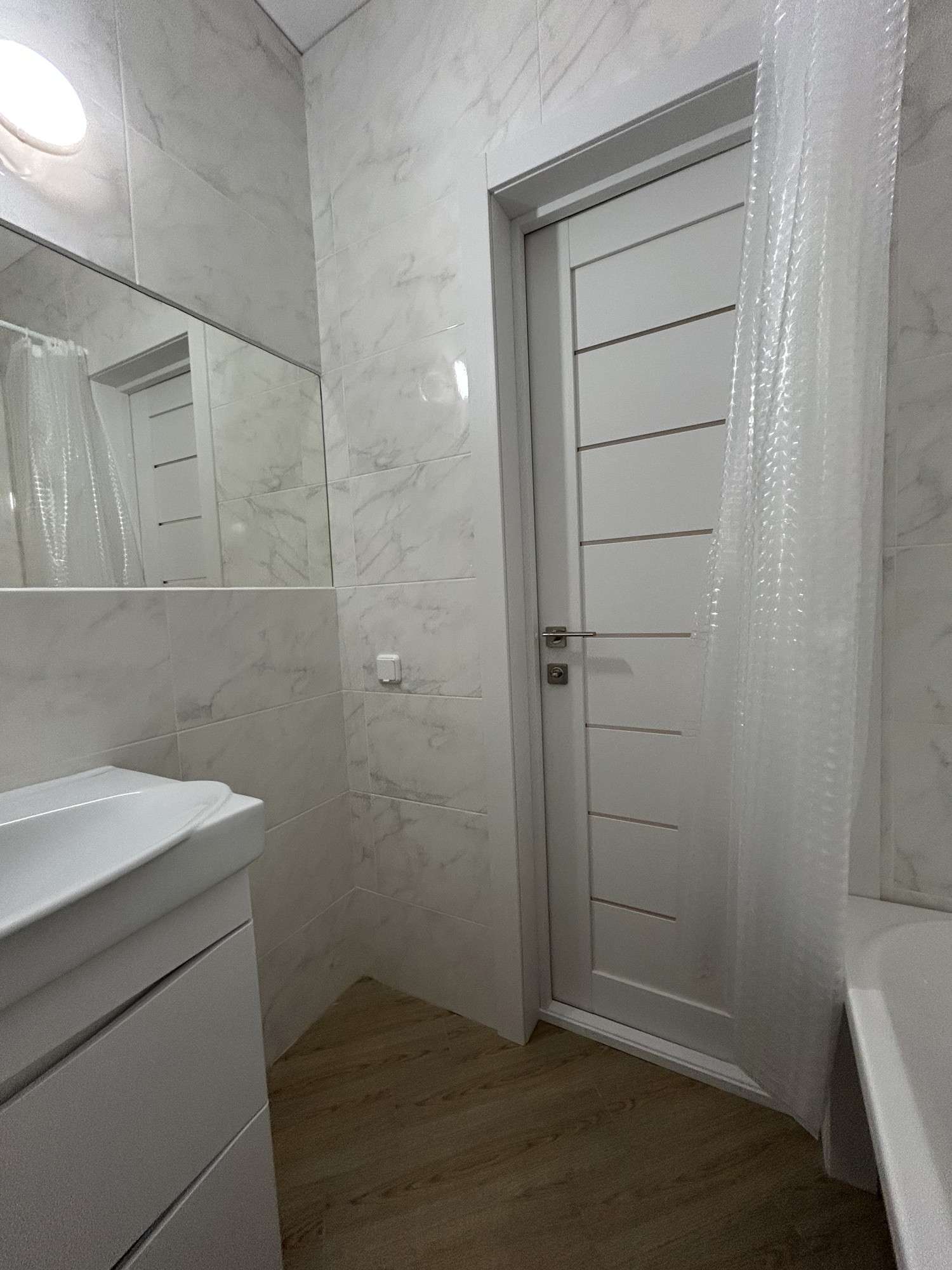 Ремонт выполнен в современном светлом стиле. Материал полов-плитка, ламинат. Качественные межкомнатные двери. Входная металлическая дверь премиум класса.