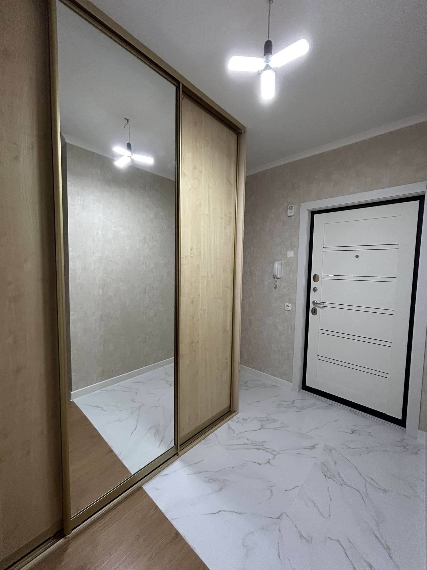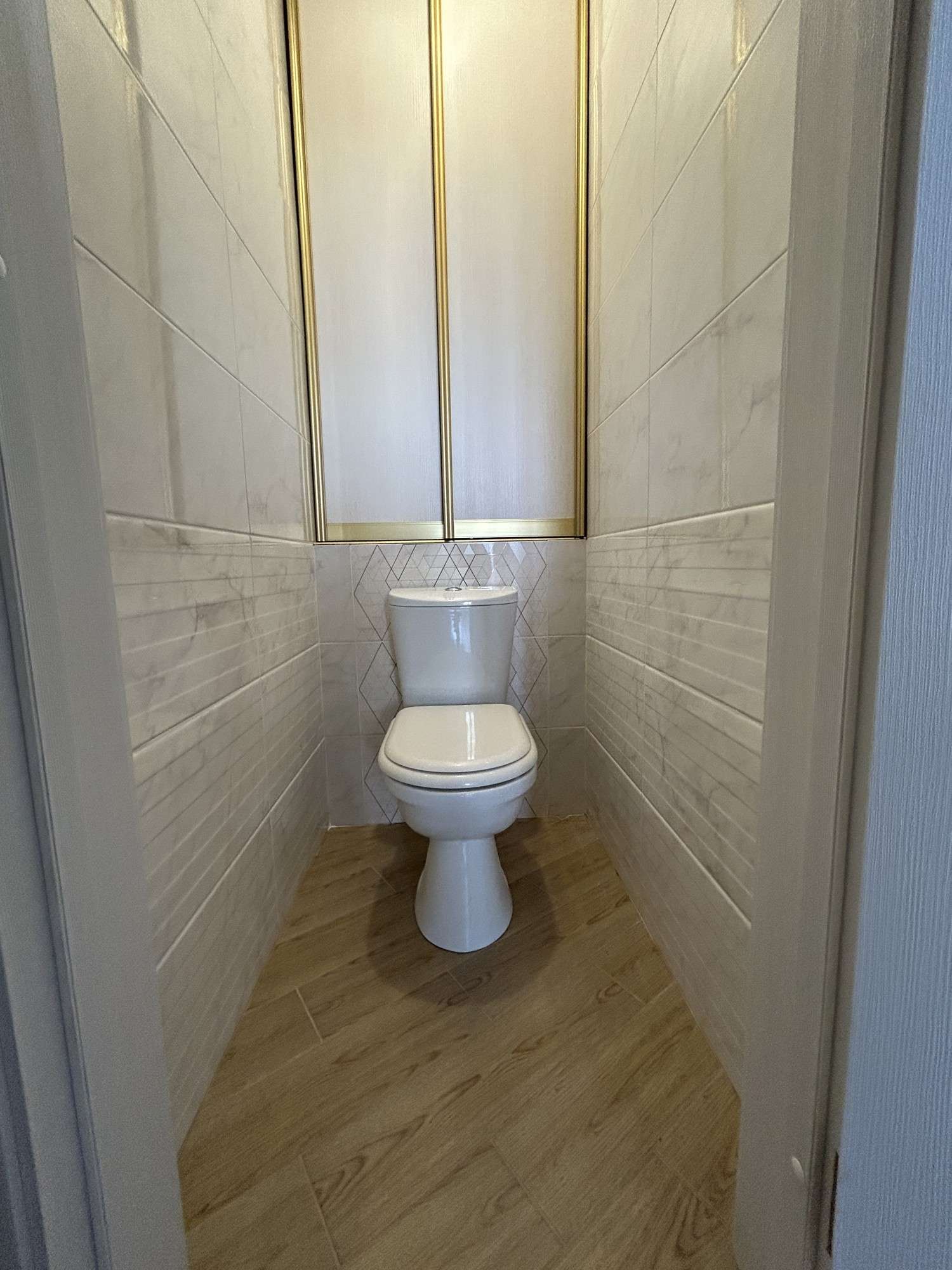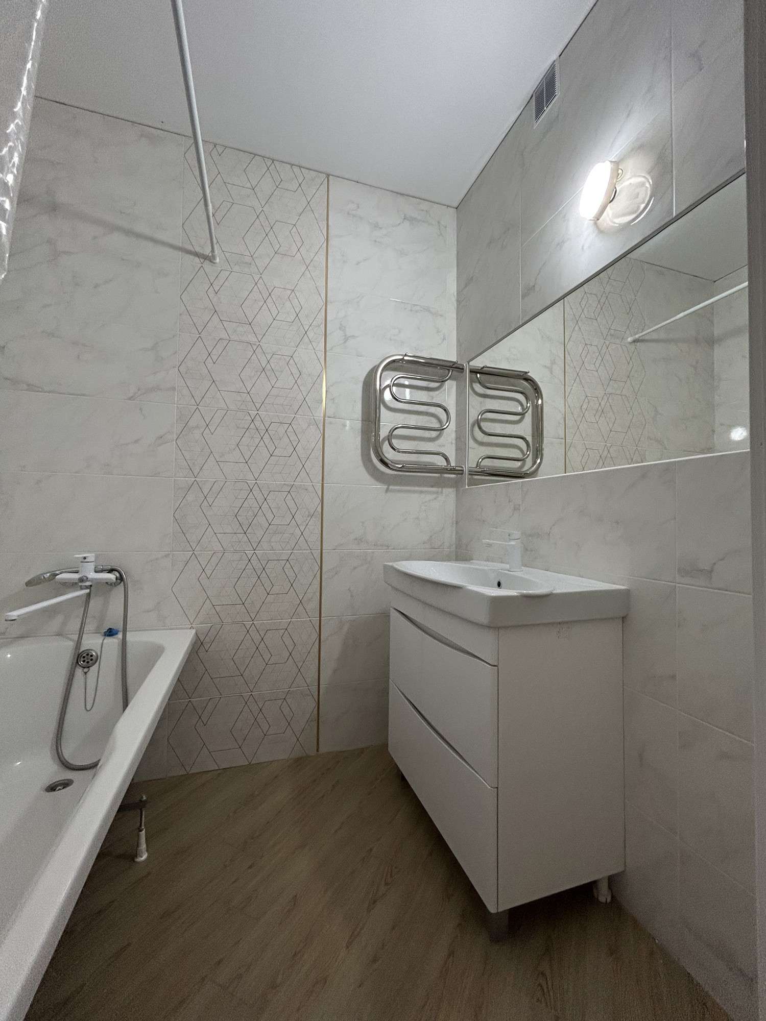 Ремонт выполнен в современном светлом стиле. Материал полов-плитка, ламинат. Качественные межкомнатные двери. Входная металлическая дверь премиум класса.