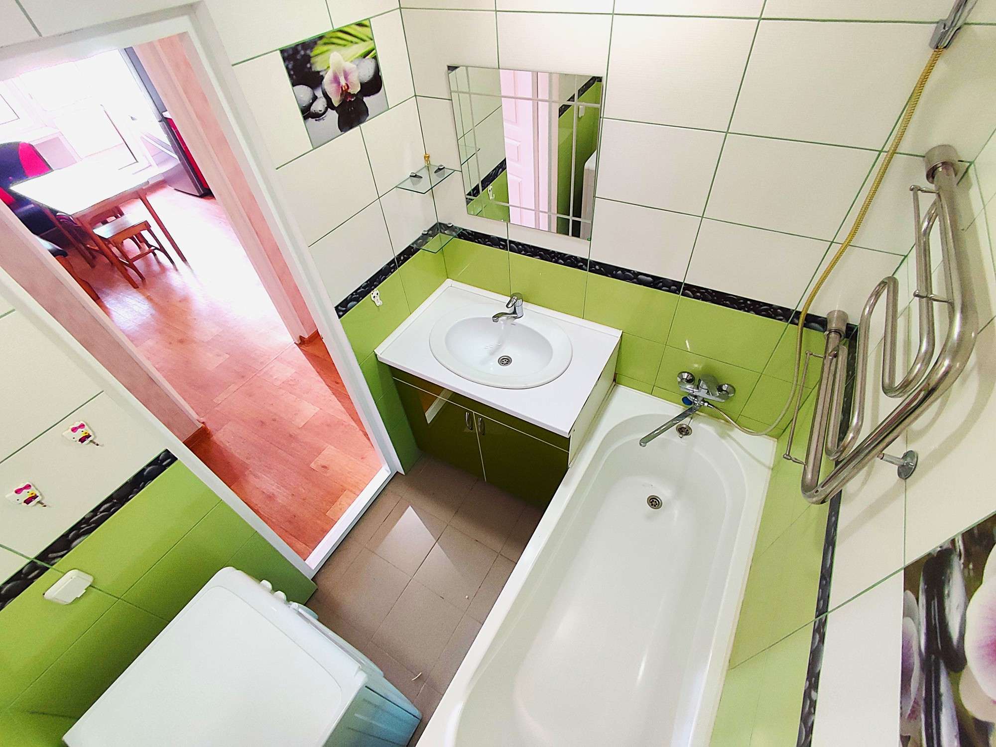 Материал стен кирпич, газосиликатные блоки. Утепленная лоджия, установлены двухкамерные стеклопакеты, благодаря чему даже зимой температура на балконе комфортная. Санузел – раздельный. Просторная ванна 3,2 м2. Санузел 1,9 м2, дополнительный умывальник в санузле.