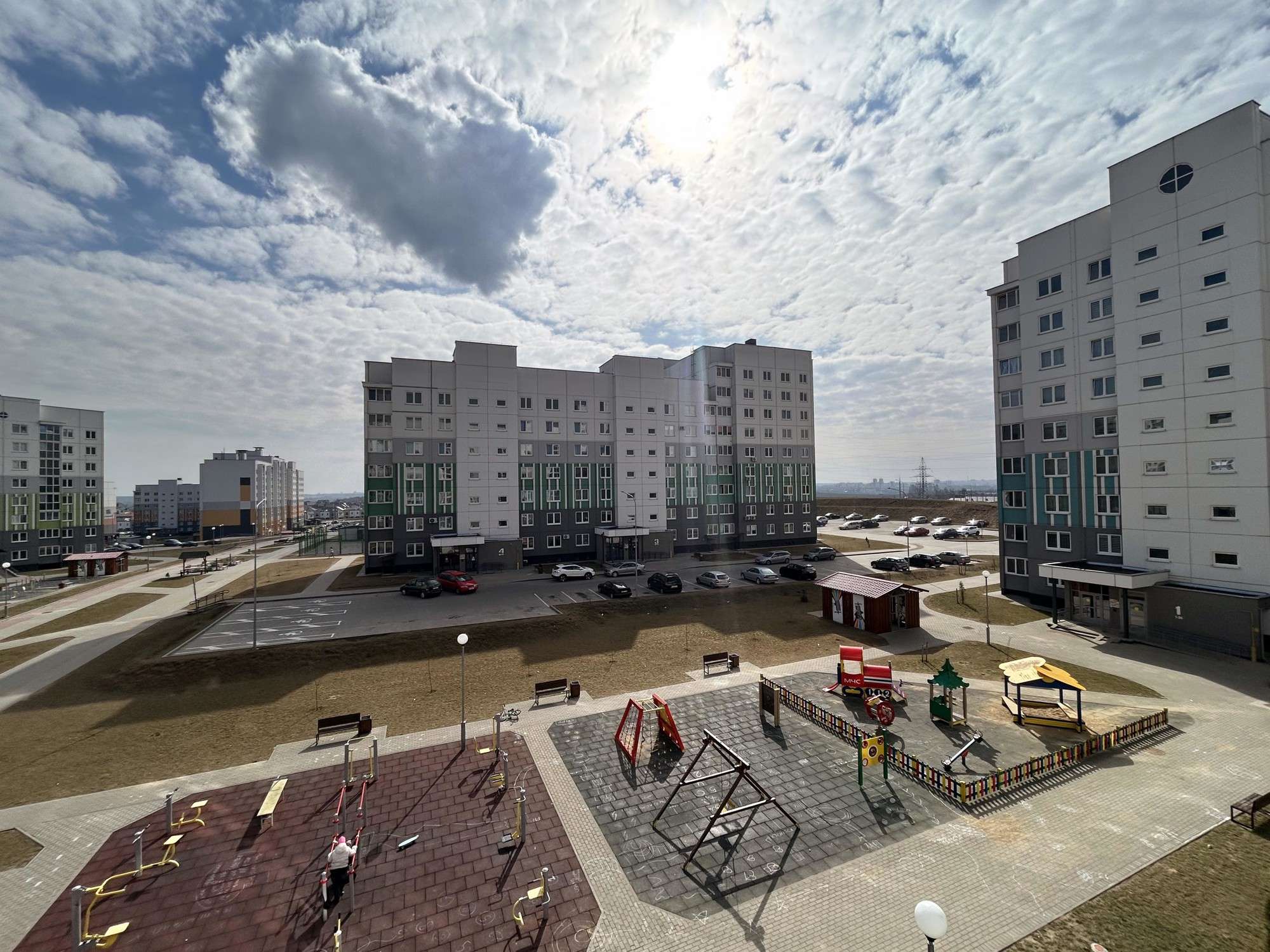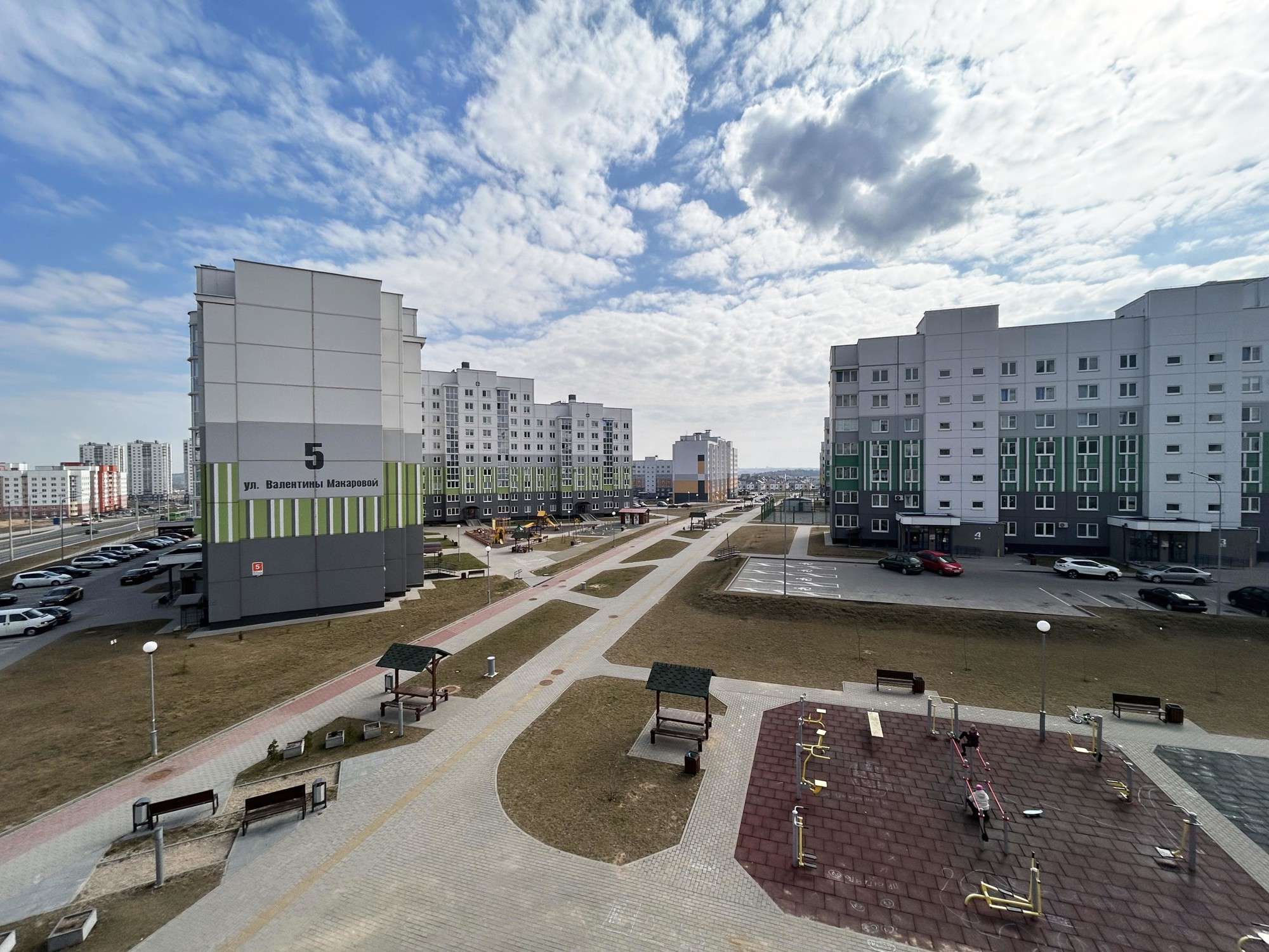 Современное благоустройство. Безбарьерная среда, двор без машин. В подъезде и по периметру дома ведется видеонаблюдение. Выложена тротуарная плитка, установлены скамейки, высажены газоны и декоративные кустарники. Во дворе современная детская площадка с безопасным резиновым покрытием. В подъезде два отдельных выхода – на сторону автомобильной парковки и на сторону детской площадки. Есть специальный гараж для хранения велосипедов. В шаговой доступности новая школа и детский сад. Рядом с домом завершается строительство торгового центра. Удобная транспортная развязка.