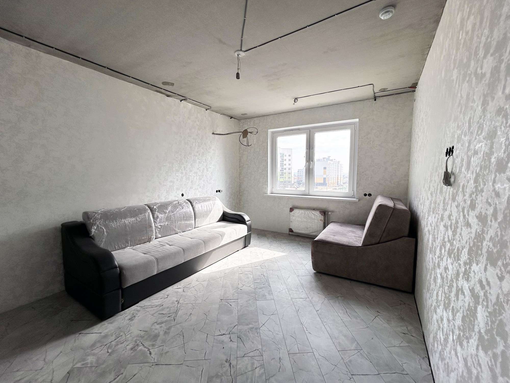 Отличная квартира для семьи в динамичном молодом районе! Две изолированные жилые комнаты, удобная кухня с застекленной панорамной лоджией. Выполнены самые пыльные и сложные ремонтные работы. Разведена электрическая проводка, установлены точки подключения светильников, розеток и выключателей. Стены выровнены, оклеены обоями. На полу уложены керамогранит и ламинат. Выполнены монтажные работы для установки кондиционеров в комнатах. Ванная комната и туалет облицованы керамогранитом, установлена сантехника отличного качества. Ремонт делали для себя – квартира продается в связи с пополнением в семье.