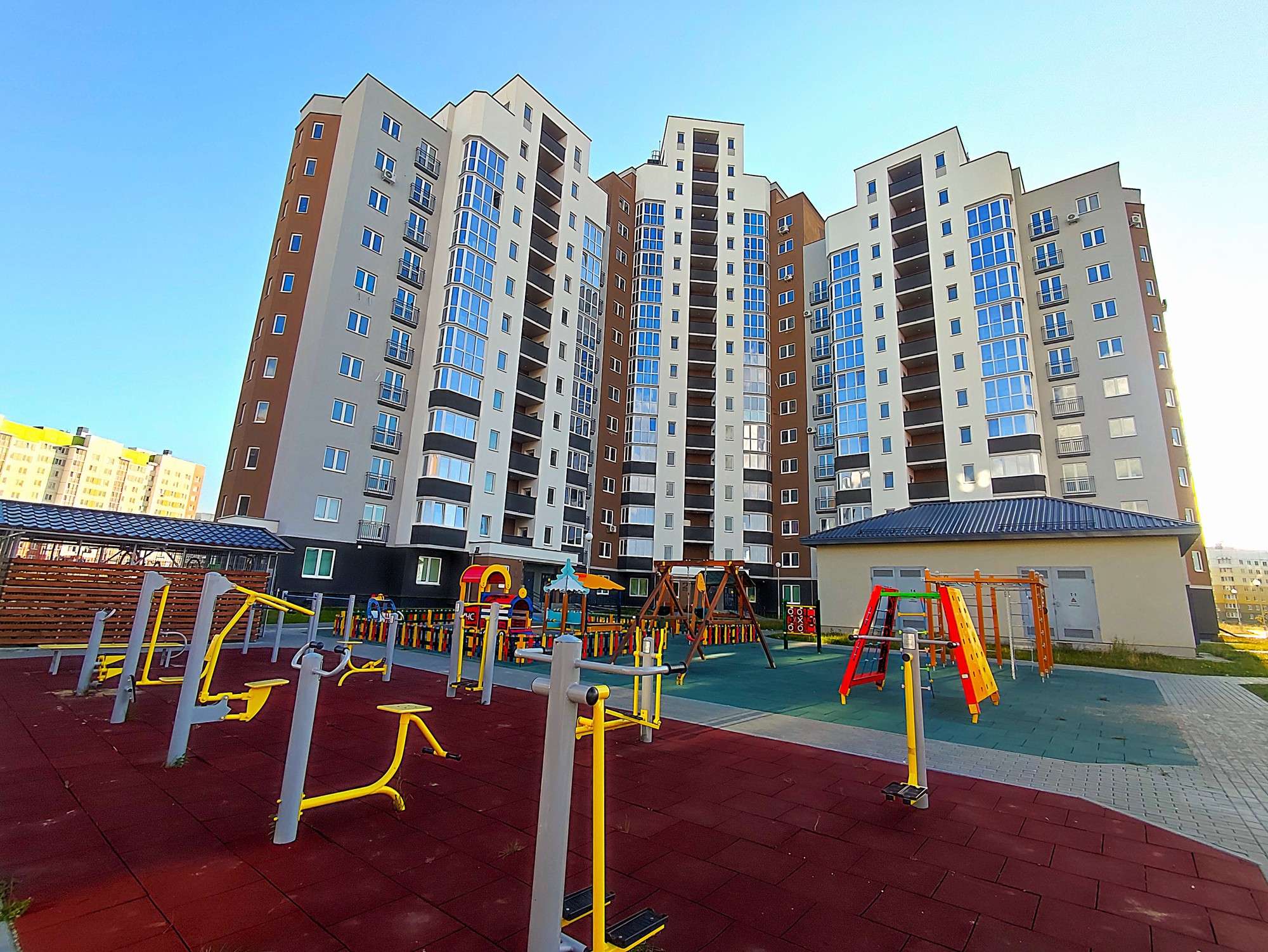 Подъезд чистый и аккуратный с местом для хранения сезонного транспорта, Периметр дома оснащён видеонаблюдением. Беспарковочная зона закрытый двор с детской и спортивной площадкой, большая парковка за домом. Вместительная подвальная ячейка. Дом находится в быстрорастущем молодом районе, где уже есть все для комфортной жизни: детский сад 111 во дворе дома, школы 27 и 42 в шаговой доступности, детская амбулатория,