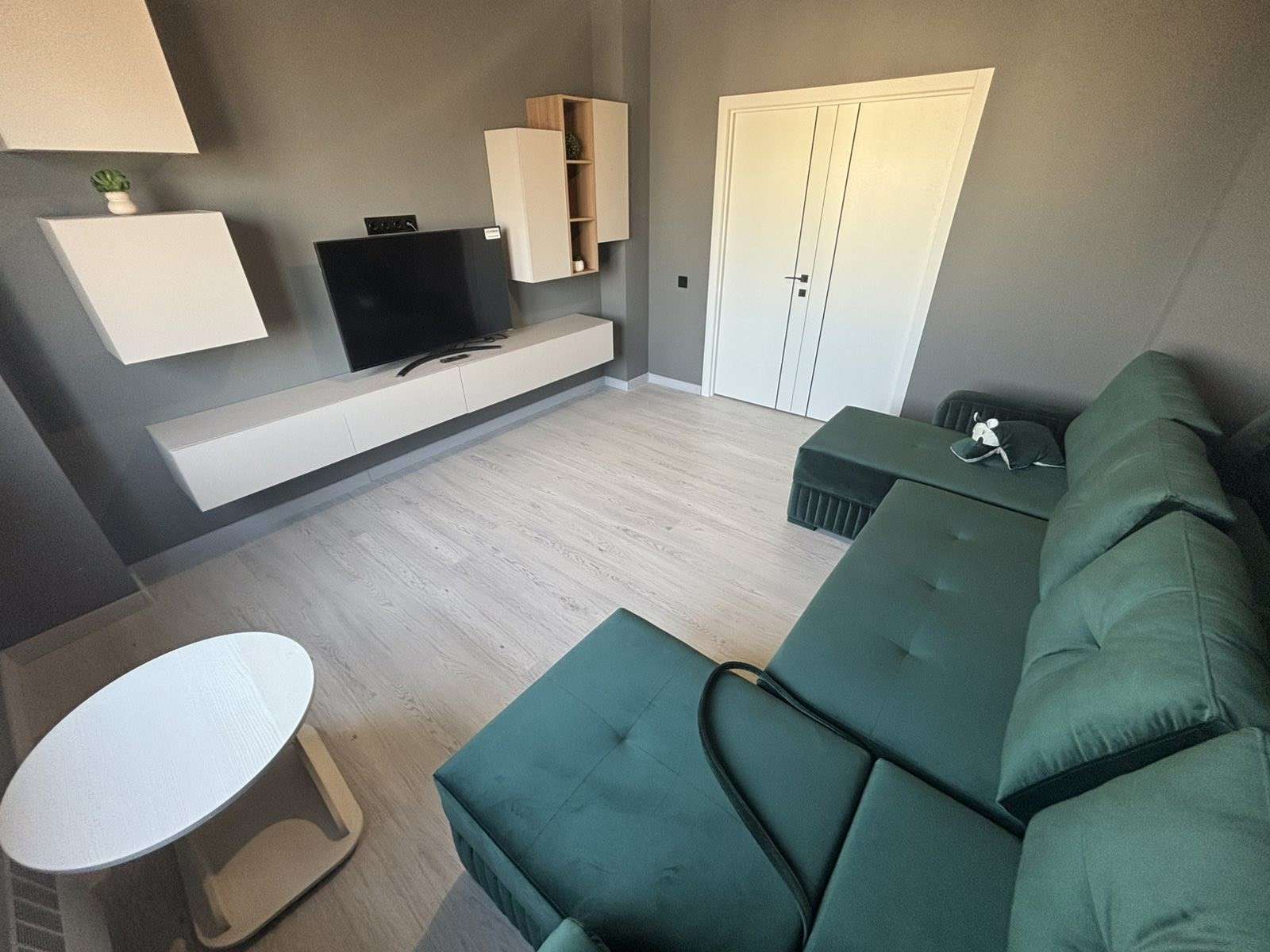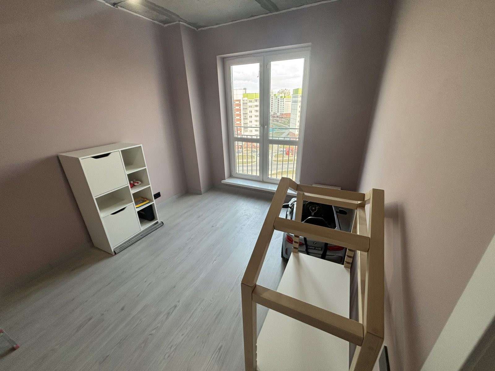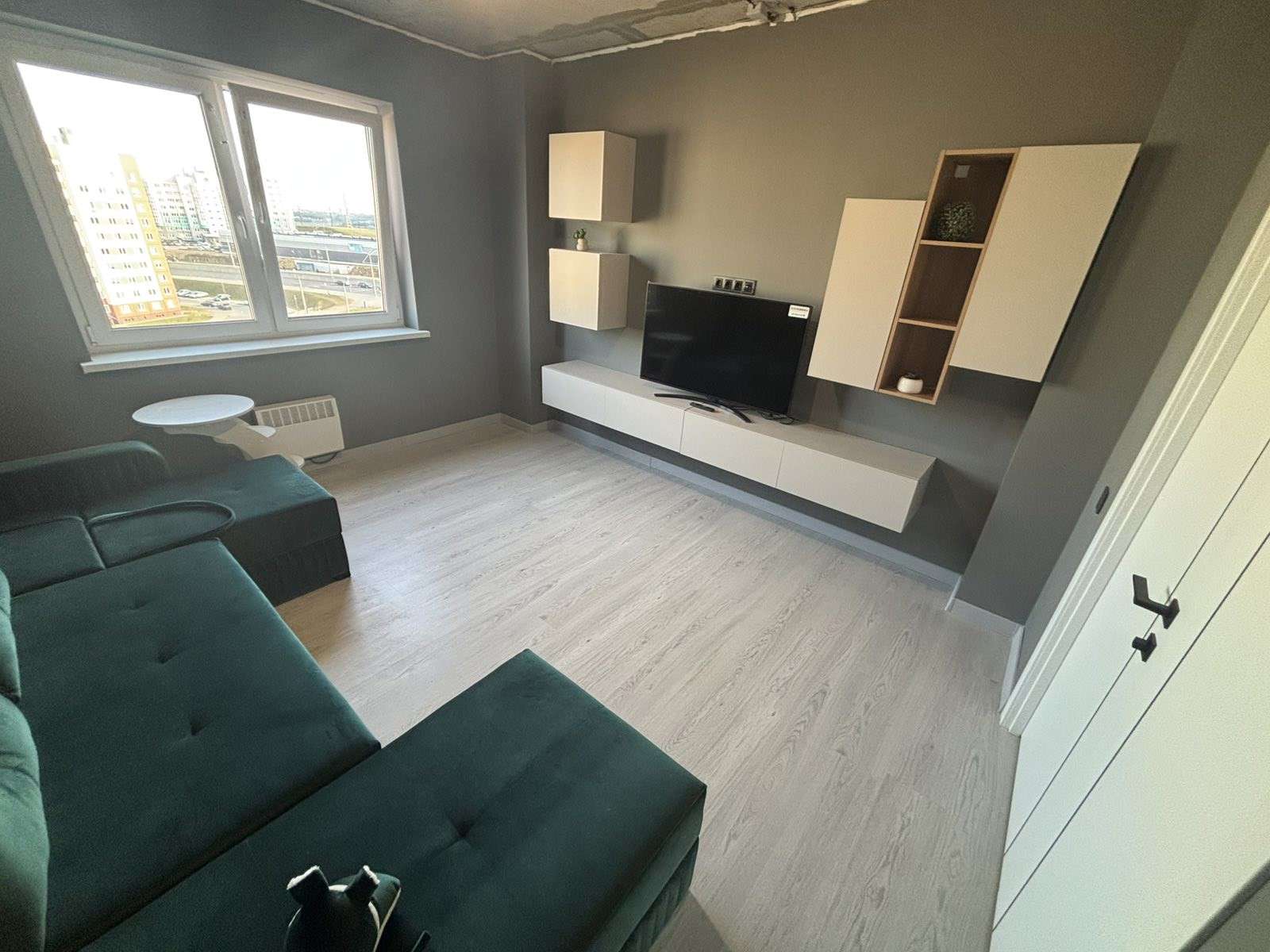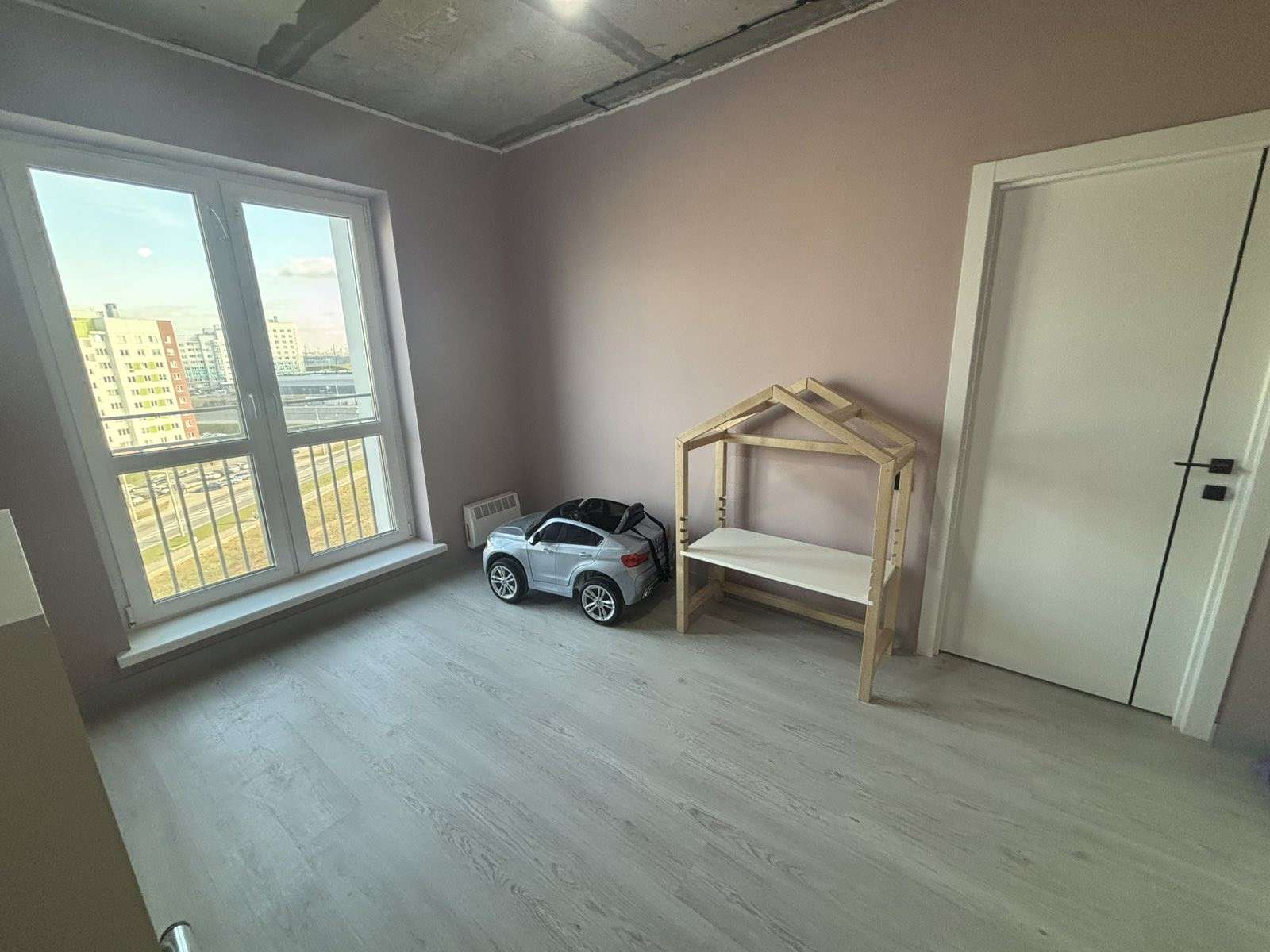 9 этаж/11 этажного монолитного жилого дома. Год постройки 2024. Площадь общая 56.8, жилая 28.1, кухня 10.6 м2. Одна панорамная лоджия на кухне. Санузел раздельный. Стены шпатлёваны, окрашены. Уложен качественный ламинат, плитка в коридоре и на кухне.