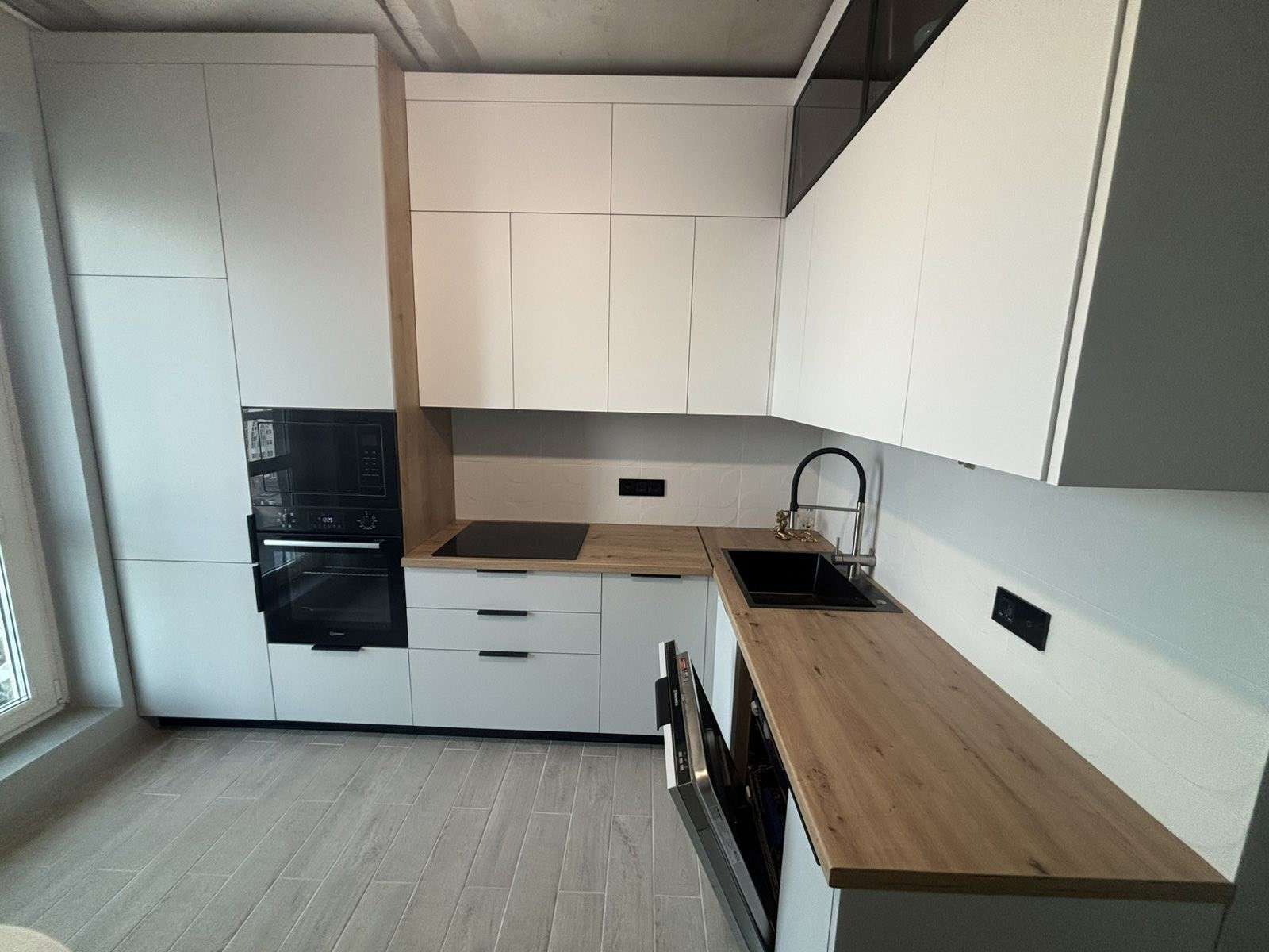 В комплекте кухня со встроенной техникой и посудомоечной машиной. В квартире сделана перепланировка, узаконена. Новому собственнику остается практически все.
