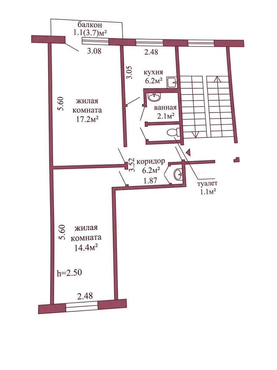Окна – деревянные, входная дверь — металлическая.