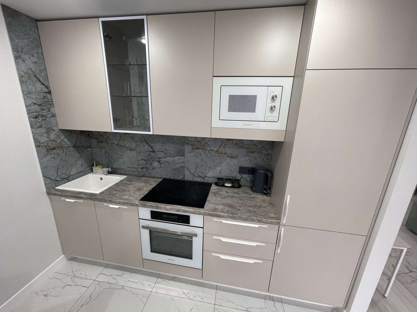 В комплекте кухня с техникой, встроенные шкафы, вся мебель!
