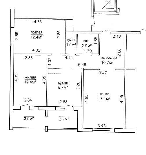 Квартира расположена на 4 этаже 8-этажного панельного дома 2010 года постройки. Площадь по СНБ 71,4 м.кв.; жилая 41,9 м.кв.; кухня 8,7 м.кв.; высота потолков 2,64 м.