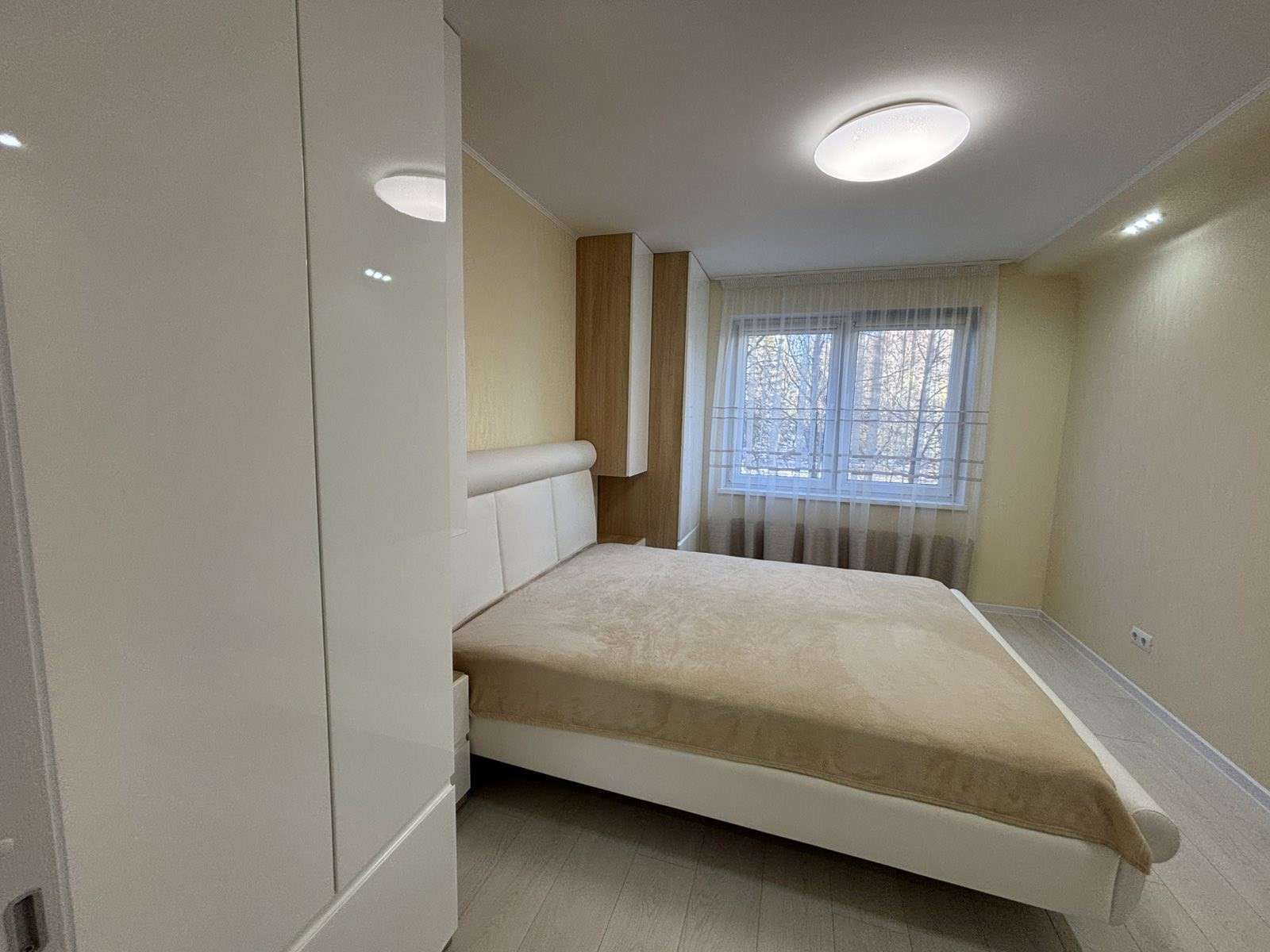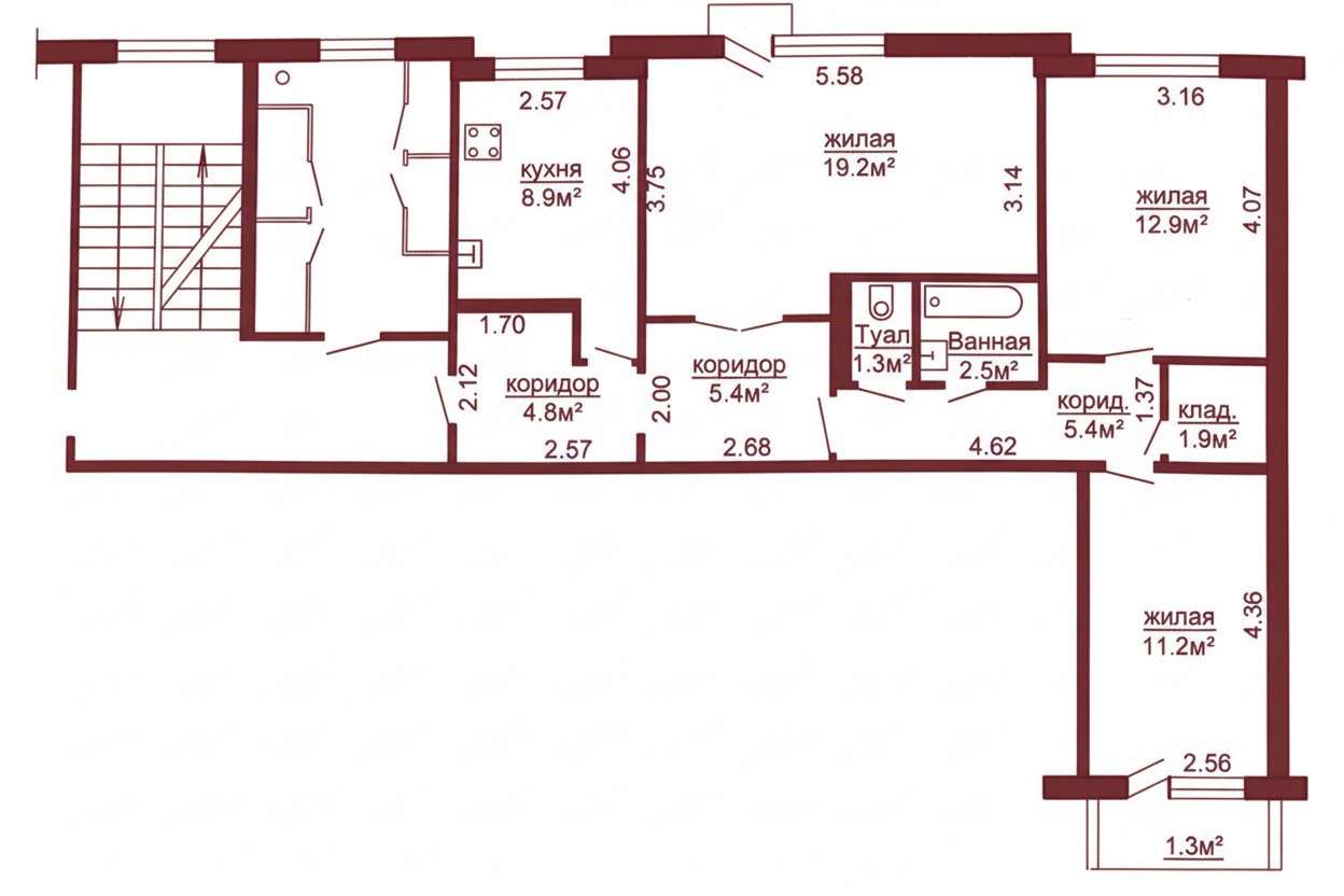 2 этаж 9-ти. этажного дома 1978 года постройки. Общая площадь 73.4. кв.м., жилая 41,3 кв.м., кухня 8.1 кв.м. Окна – ПВХ. На кухне уложен теплый пол. Сан. узел раздельный, облицован плиткой, установлен бойлер. Материал полов – плитка, ламинат. В квартире остается новая кухня с встроенной бытовой техникой BOSCH, посудомоечная машинка. Встроенная мебель.