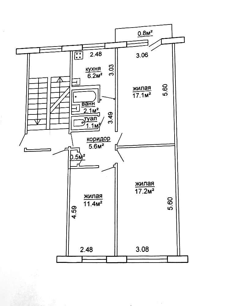 Функциональная и удобная планировка квартиры: общая площадь – 61.2 метров квадратных, жилая – 45,7 метров квадратных, кухня - 6.2 метров квадратных. Окна выходят на две стороны. Санузел раздельный. Металлическая входная дверь. Квартира без ремонта, что дает возможность воплотить любой проект и сделать квартиру своей мечты. За квартирой закреплена подвальная ячейка. Не угловая.