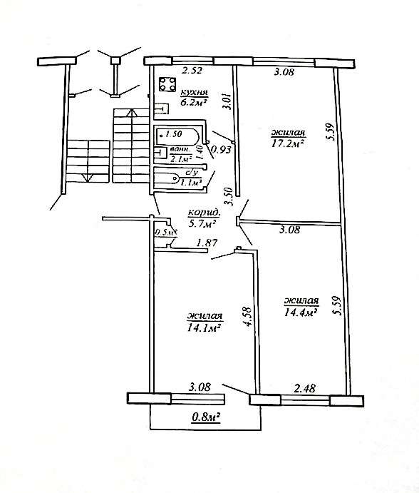 Общая площадь - 61,3 м²