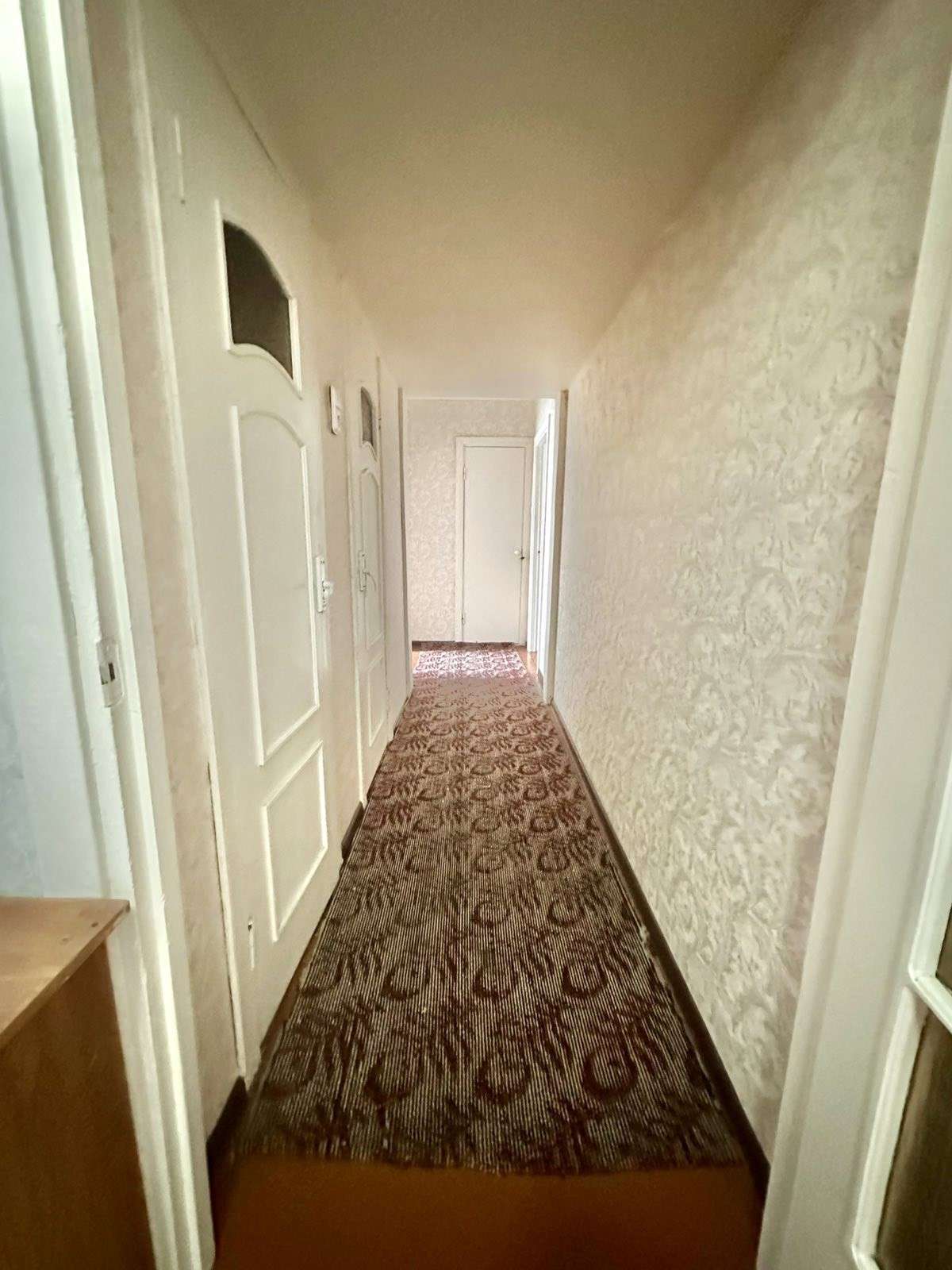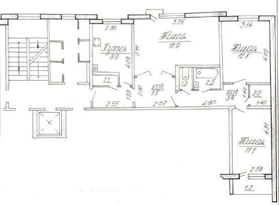 6 этаж 9-тиэтажного дома 1977 года постройки, материал стен – панель. Общая площадь 72.8 кв.м., жилая 42.8 кв.м., кухня 8.9кв.м. Окна – дерево. Сан. узел раздельный. Материал полов – ДСП.