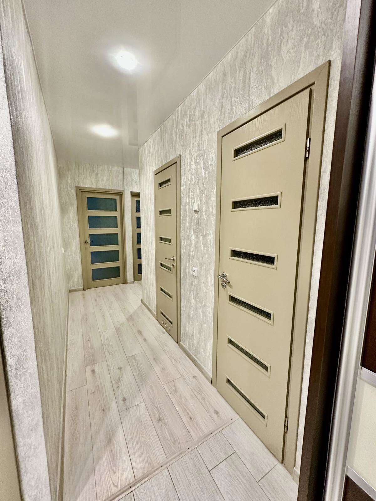 8 этаж 9-ти этажного панельного дома 2017 года постройки. Общая площадь 80 кв.м., жилая – 44.5 кв.м., кухня 11.8. Окна – ПВХ. Сан. узел раздельный, облицован плиткой, установлена стиральная и сушильная машина. Материал полов – ламинат, плитка, материал стен – обои. Квартира продается со встроенной мебелью и техникой.