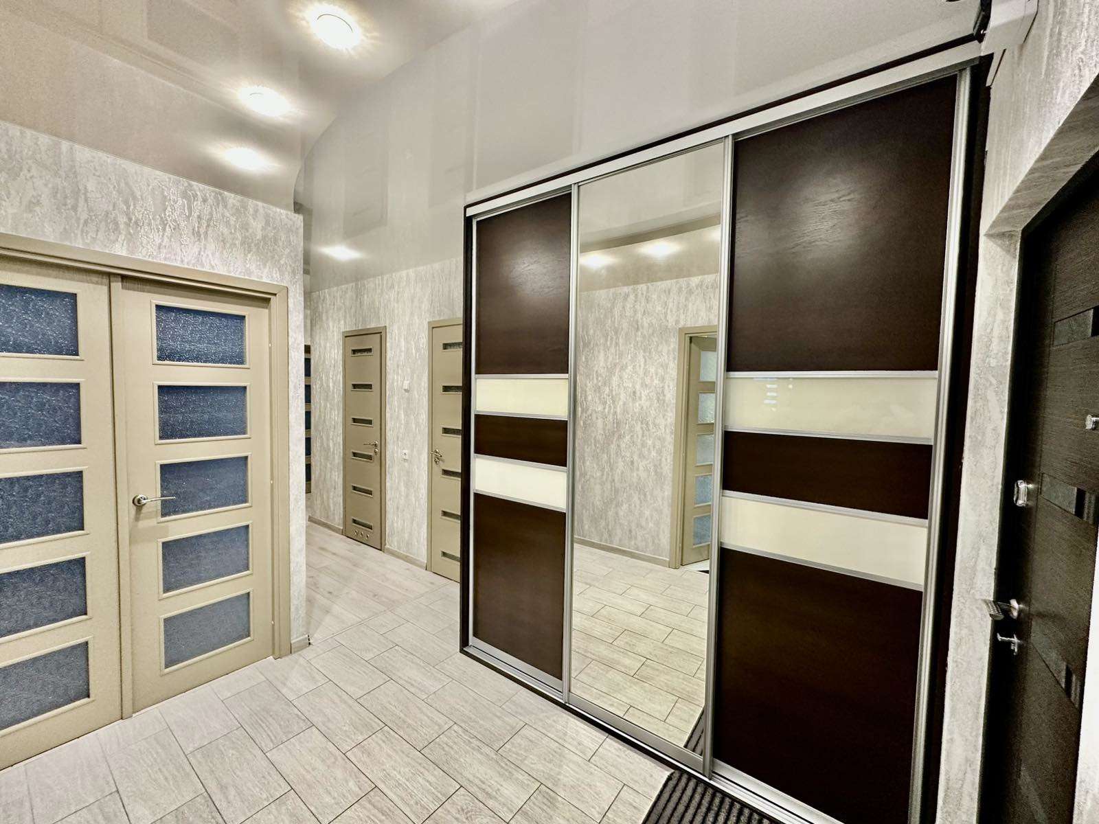 8 этаж 9-ти этажного панельного дома 2017 года постройки. Общая площадь 80 кв.м., жилая – 44.5 кв.м., кухня 11.8. Окна – ПВХ. Сан. узел раздельный, облицован плиткой, установлена стиральная и сушильная машина. Материал полов – ламинат, плитка, материал стен – обои. Квартира продается со встроенной мебелью и техникой.