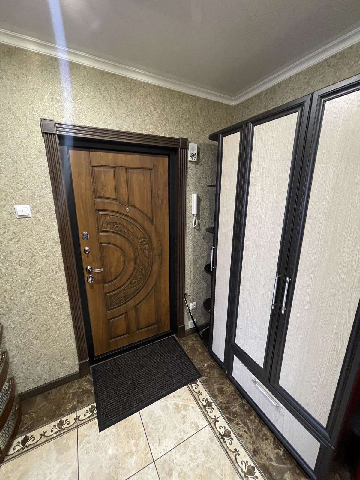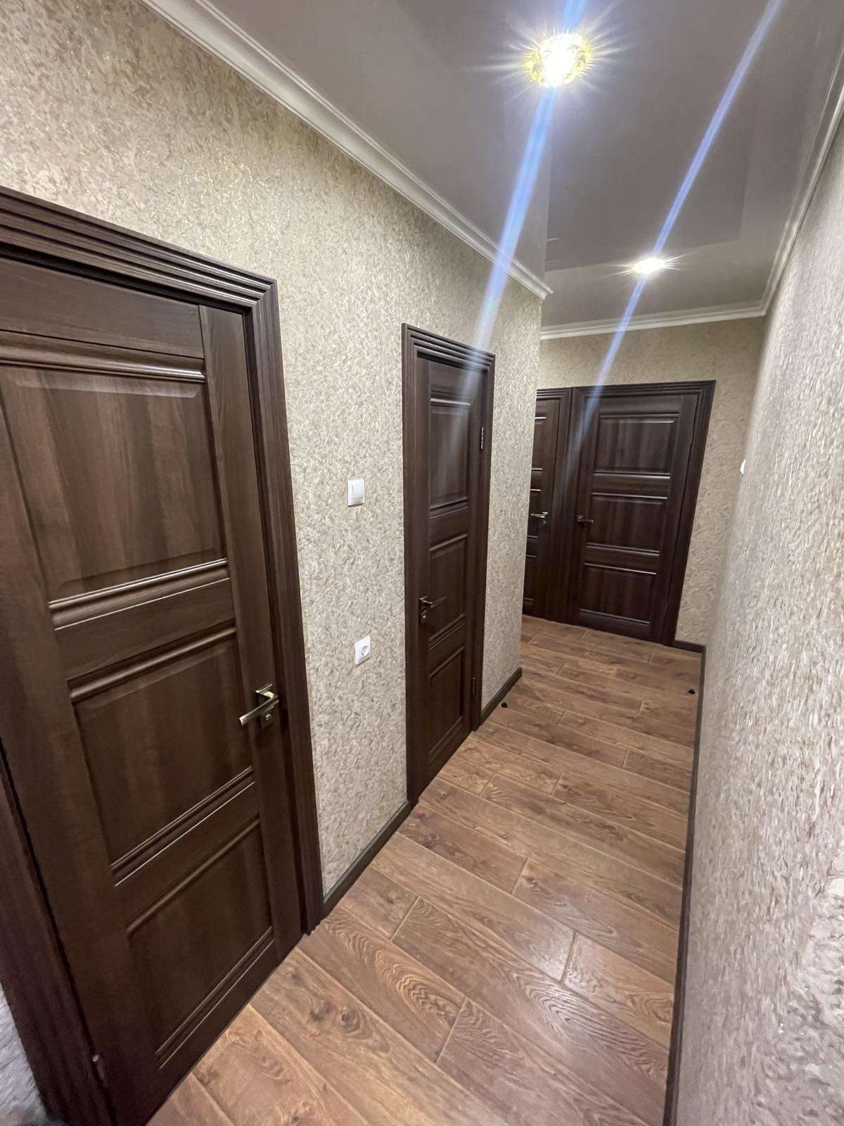 Выполнен современный ремонт.На полу ламинат,плитка. Металлическая входная дверь.