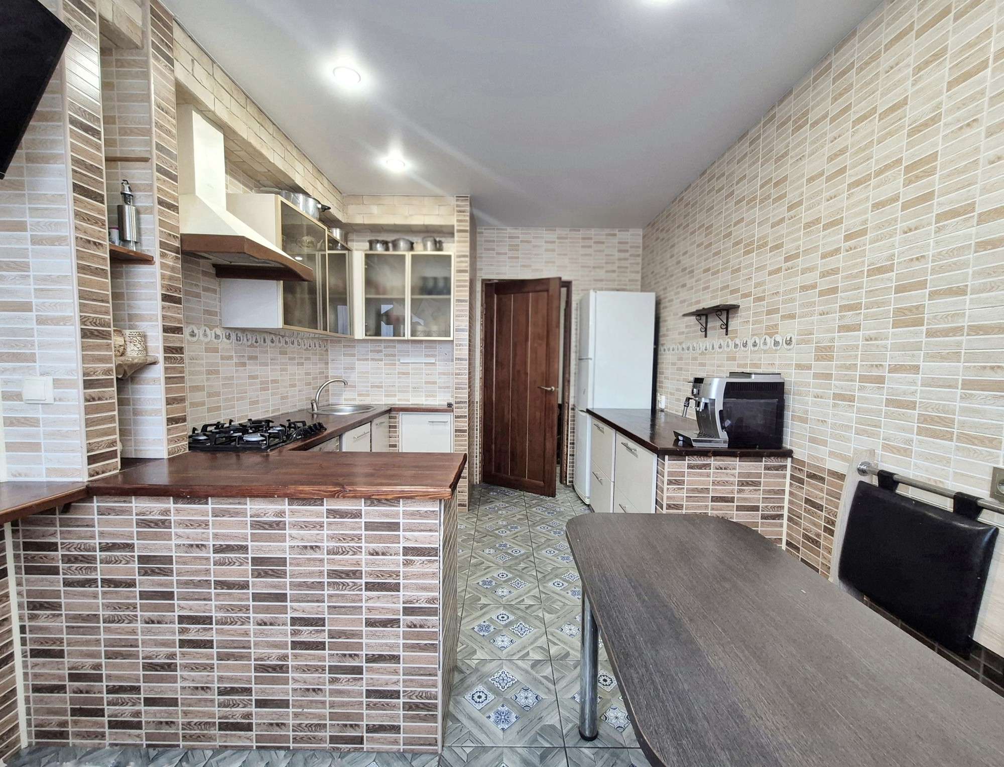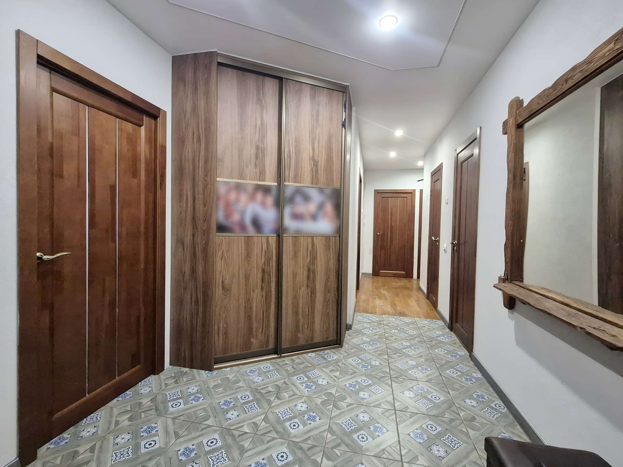 В квартире сделан жилой ремонт. На полу в кухне и прихожей лежит плитка, в комнатах и коридоре - паркетная доска дуб и ольха. Стены покрашены в светлые тона. Потолки в жилых комнатах покрашены, в кухне и коридоре - натяжные. Межкомнатные двери из массива сосны.
