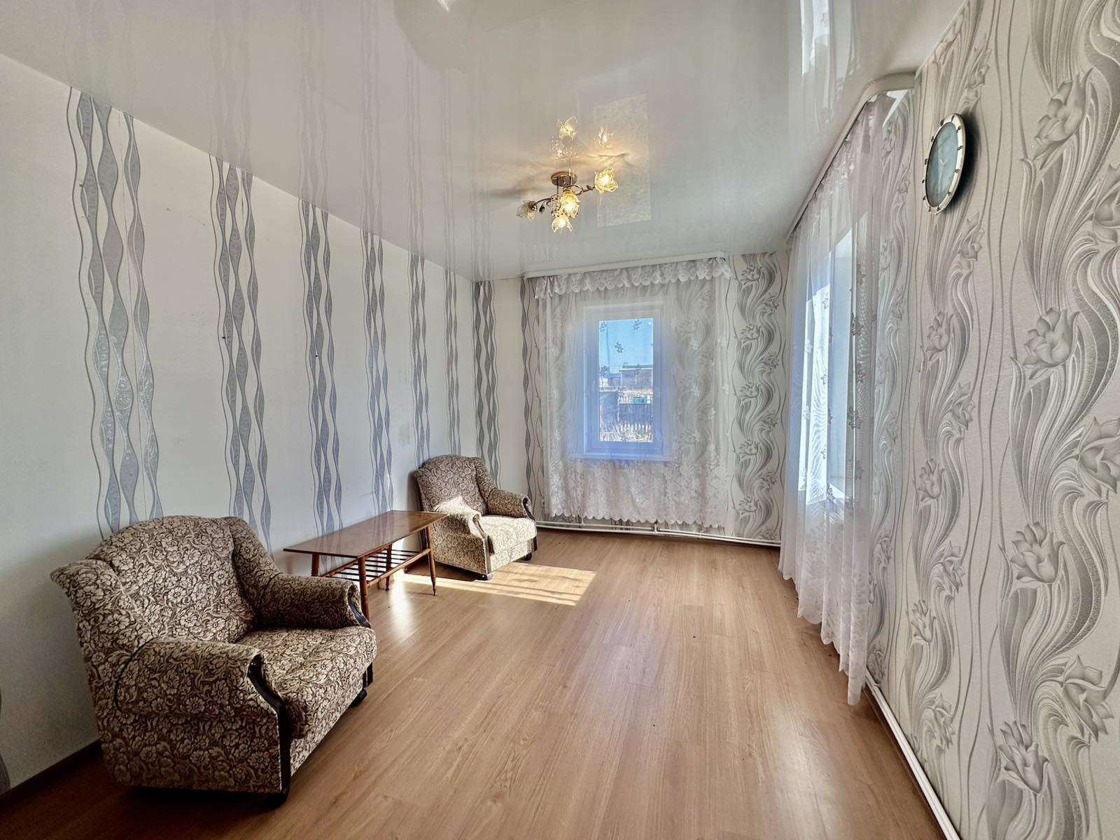 Дом 1960 года постройки, в 2013 была реконструкция, деревянный, крыша шифер, окна ПВХ, отопление газовое, электричество, вода центральная, канализация местная. Общая площадь 59.8 кв.м., жилая – 40.4 кв.м., кухня 9.6 кв.м. Окна – ПВХ. Материал полов – ламинат. Материал стен - обои.