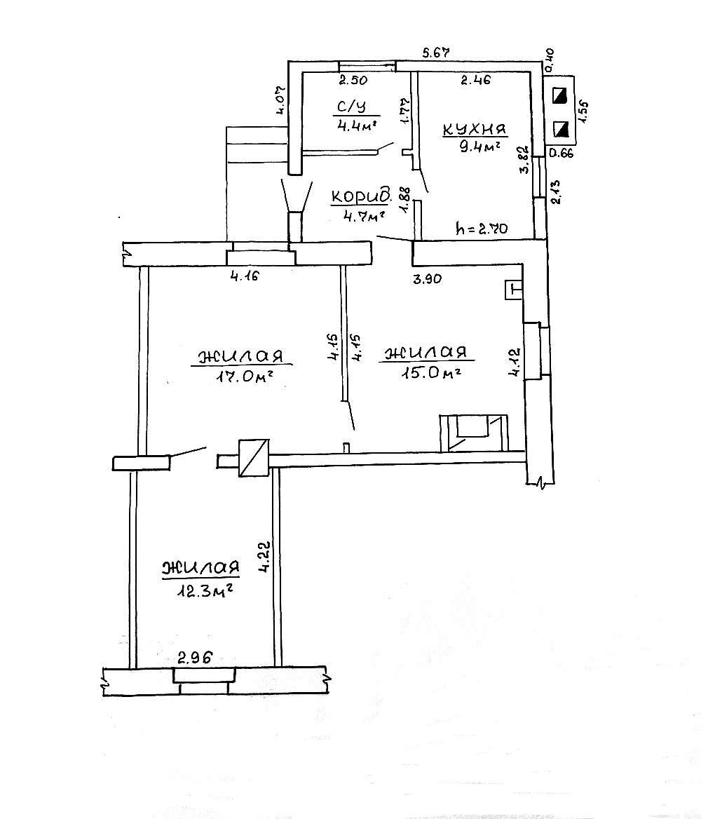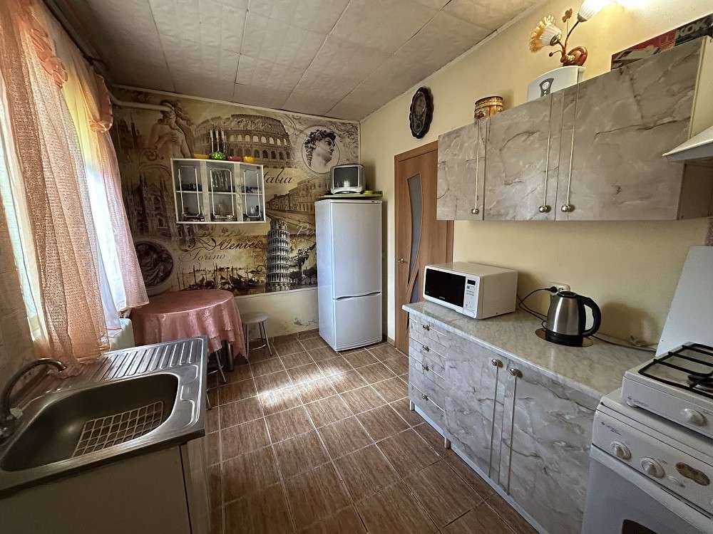 Общая площадь квартиры 62,8 кв. м, жилая-44,3 кв.м. В доме 3 комнаты (15.0 кв.м; 17.0 кв.м; 12.3 кв.м); кухня-9.4 кв.м. Центральное газовое отопление. Высота помещений-2,94м. Просторный совмещённый санузел -4,4 кв.м.(с душевой). Коридор со встроенным шкафом-4,7 кв.м. Прочный фундамент даёт возможность постройки 2го этажа. Дом оштукатурен. Крыша-шифер. Забор из сетки-рабицы и дерева. К дому прилегает земельный участок. Непосредственно за квартирой закреплён участок размером 0,0351га. Имеется гараж (металлический) и хозпостройка. Есть место для небольшого огорода или зоны барбекю. Произрастают вишни, виноград, смородина. К продаваемой квартире возможно подъехать на личном транспорте.