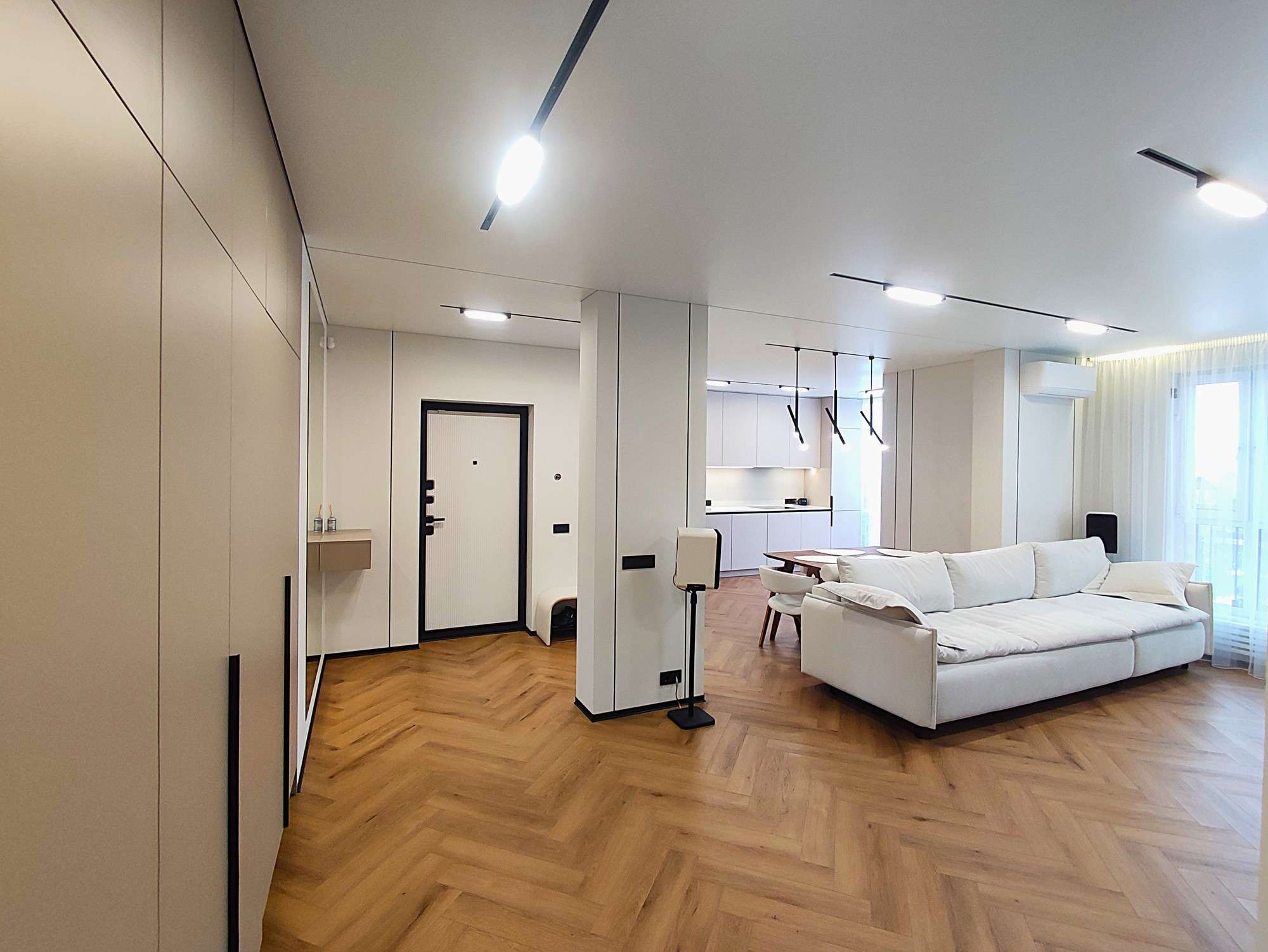 Ремонт выполнялся под личным контролем собственников и был завершён в декабре 2025г. В процессе исправлены все типичные ошибки застройщика (выровнены стены, перезалита стяжка по всей квартире, переделаны стыки потолка и стен и т.д.). Дизайнерский свежий ремонт. Всё абсолютно новое.