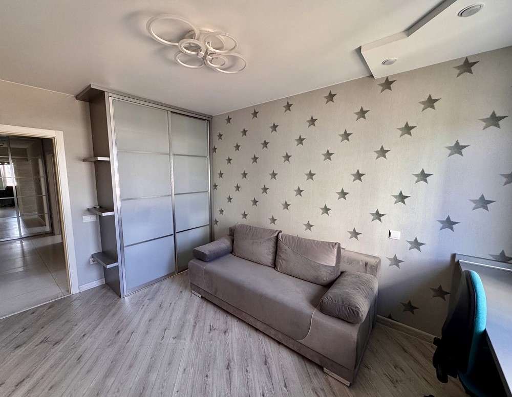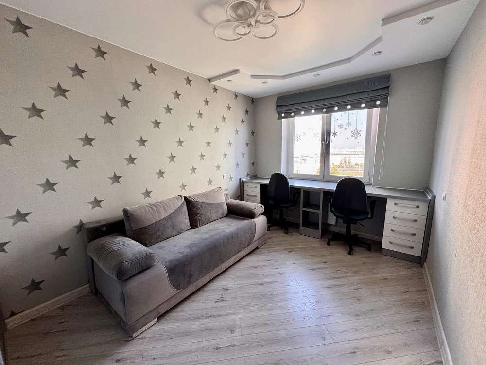 В продаже 3-комнатная квартира в современном м-не Колбасино, по ул. Суворова, 304а. Квартира расположена на 7-ом этаже 19- этажного панельного дома 2017 года постройки. Общая площадь 75,8 м.кв.(по СНБ 80,1м.кв.), жилая 45,2 м.кв., кухня 11,2 м.кв. Высота потолков 2,63 м. В квартире выполнен качественный ремонт. Окна – ПВХ; материал полов – ламинат высокой прочности, плитка; стены – декоративная штукатурка, в детской комнате – обои, в одной комнате установлен кондиционер. Санузел раздельный, облицован плиткой и оборудован современной сантехникой (на время отключения горячей воды имеется бойлер). Две утепленные лоджии. Входная дверь металлическая. Квартира полностью готова к проживанию, т.к. оснащена всей необходимой мебелью и техникой. В доме установлено видеонаблюдение и домофон, 2 лифта. Во дворе имеется парковка для автомобилей с достаточным количеством парковочных мест, современная детская площадка. В шаговой доступности: школа №37, 4 гимназия, детские сады, магазины, ТЦ, аптеки, Юбилейное озеро, остановки общественного транспорта.