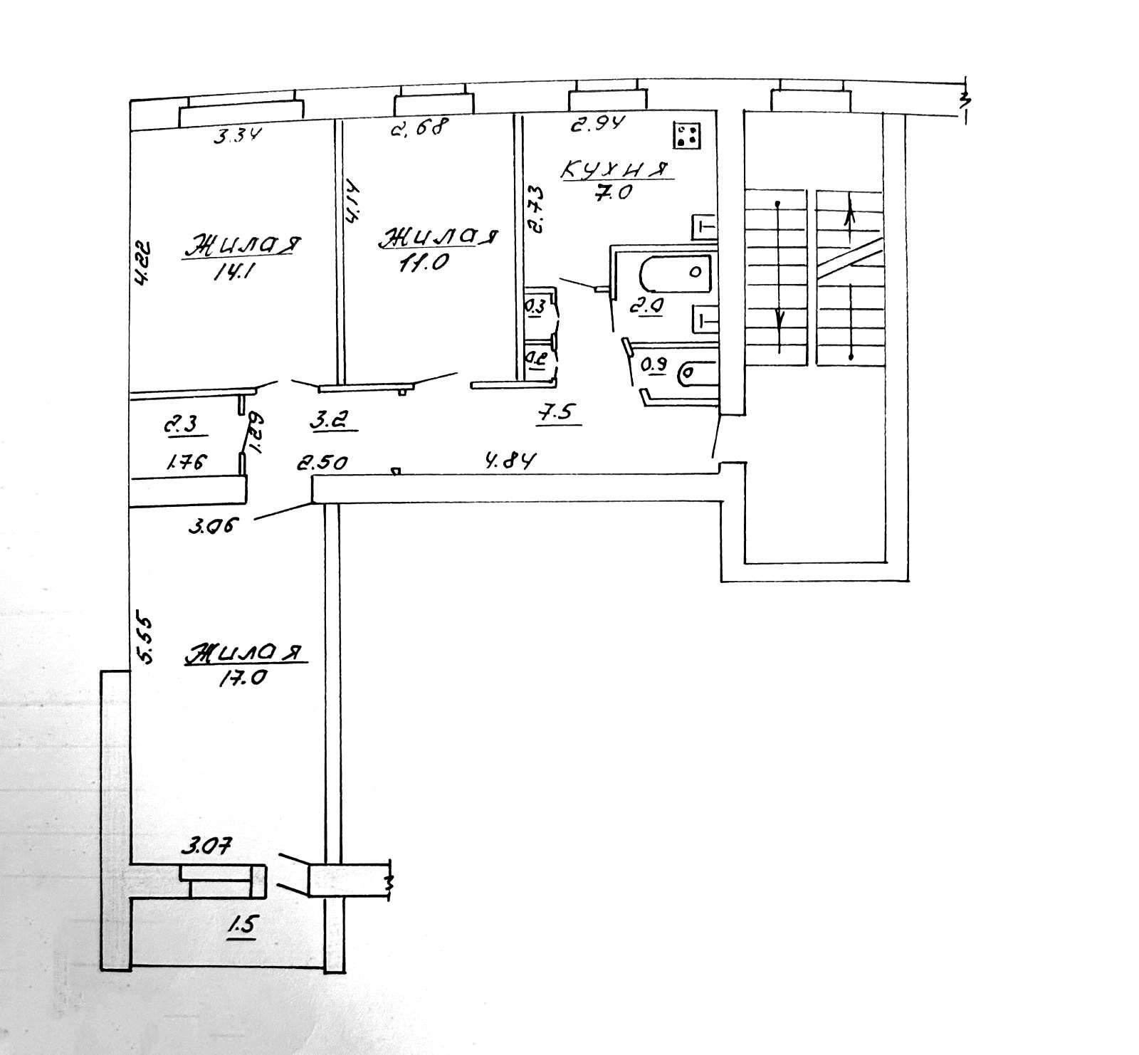 Трехкомнатная квартира удобной планировки в историческом центре Гродно. Общая площадь квартиры – 65,5 кв. м., жилая – 42 кв. м. Кухня – 7 кв. м., без газовой колонки. Высота потолков – 2,83 м. Есть лоджия. Раздельный санузел. Установлены окна ПВХ. Квартира в простом жилом состоянии, под ремонт. Материал стен позволяет выполнить перепланировку. Дом утеплен, оштукатурен и окрашен. Благоустроенная придомовая территория.