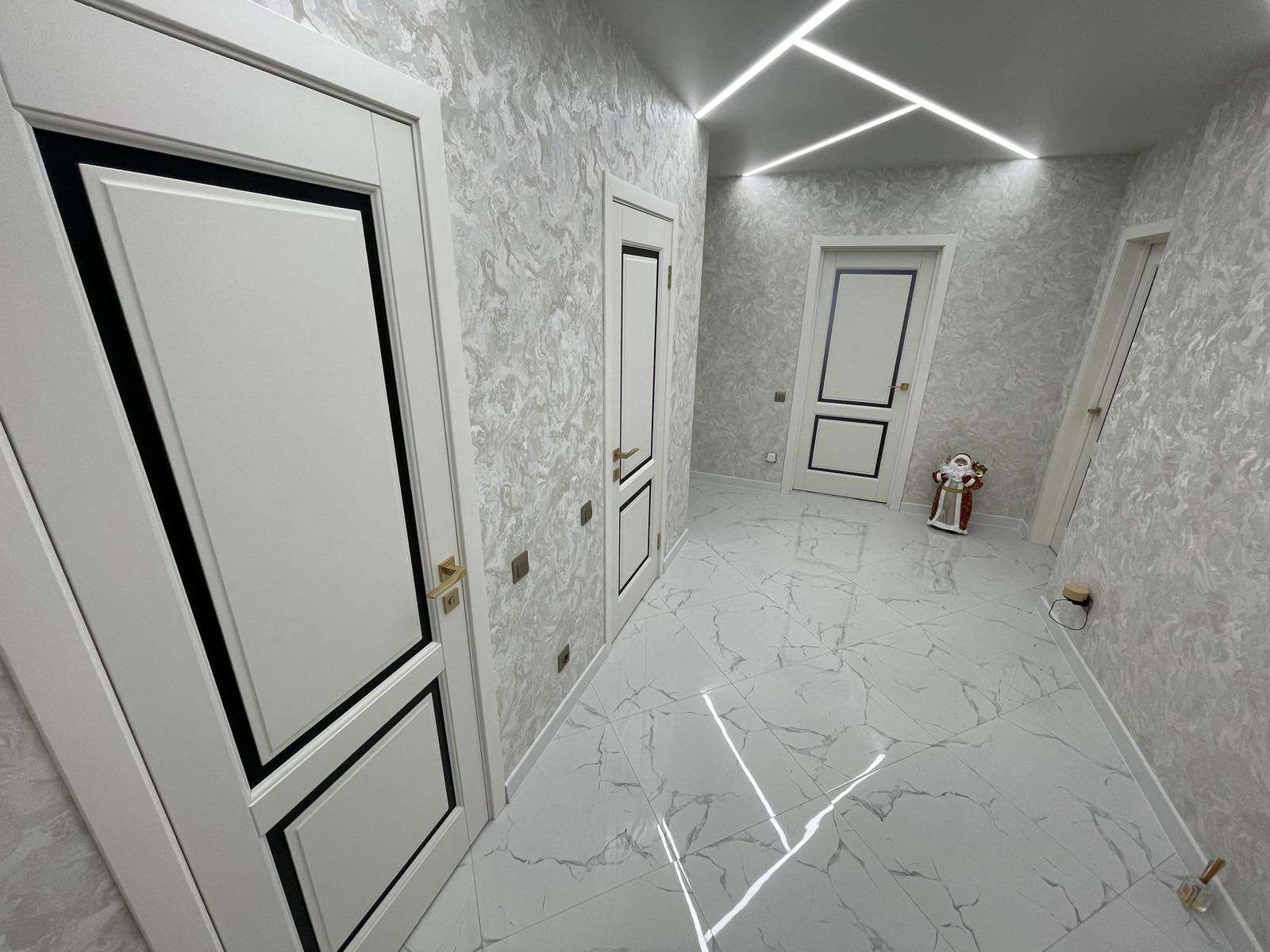 Выполнен дизайнерский ремонт с применением натуральных дорогостоящих материалов. В комплекте кухня со встроенной бытовой техникой !