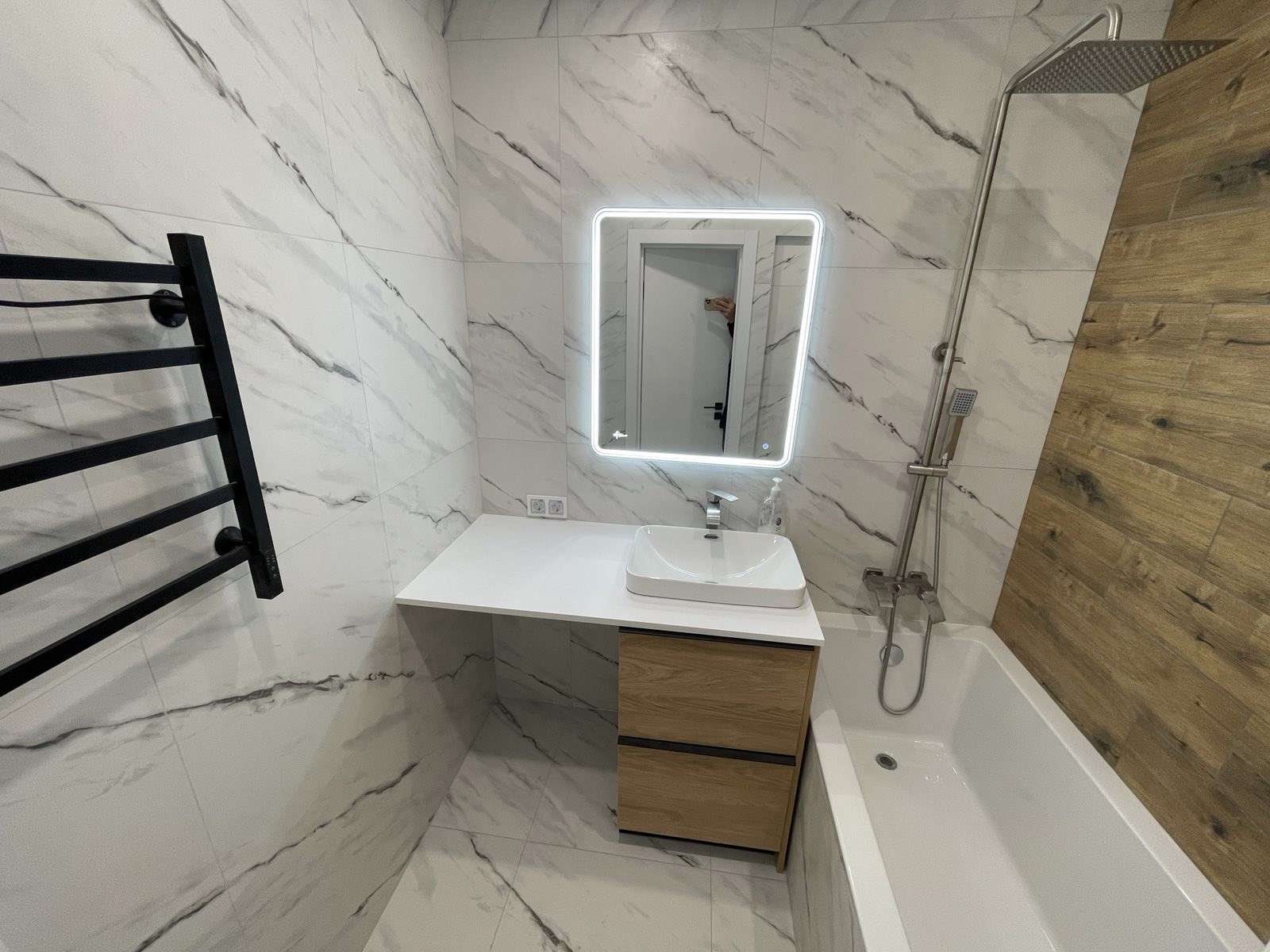Выполнен стильный ремонт с применением натуральных дорогостоящих материалов.
