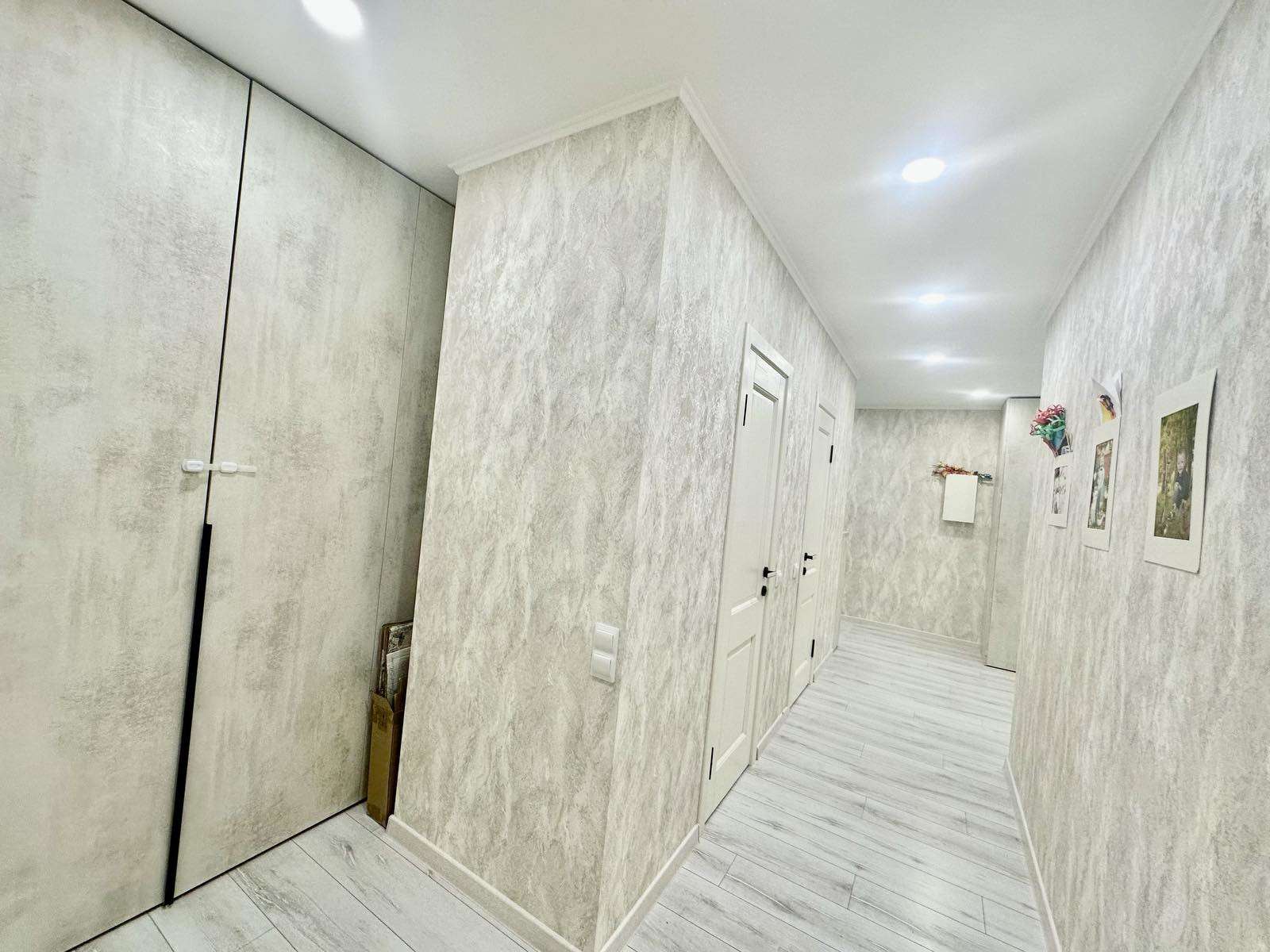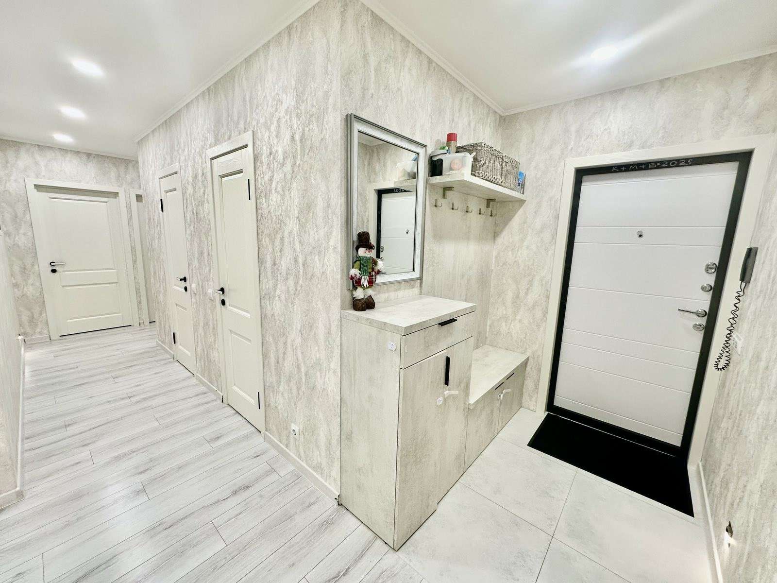 9 этаж 9-тиэтажного дома 2020 года постройки, материал стен – панель. Общая площадь 81.2 кв.м., жилая 44.9 кв.м., кухня11.7 кв.м. Окна –ПВХ . Сан. узел раздельный, облицован плиткой. Материал полов – ламинат, плитка. Квартира имеет полноценные три спальни и гостиную совмещённую с кухонной зоной, заменена вся электрика застройщика, с проведением отдельных линий по комнатам и добавлением отдельных линий на мощные электроприборы, продуманы проходные выключатели, ночная подсветка, розетки в зоне окна. Есть возможность сделать видеозвонок. Газ обрезан, стоит электрическая варочная панель. Техника на кухне BOSCH : посудомоечная машина, варочная поверхность, духовой шкаф, холодильник, стиральная машина. Интернет проведен в каждую комнату под предполагаемые рабочие-учебные места. Потолки в комнатах родные, в коридорах, санузле и ванной - гипсокартон. В санузле встроенная инсталляция. Имеется водонагреватель ( бойлер), который отлично спасает во время отключения горячей воды в районе. Двери межкомнатные деревянные, дверные замки магнитные, в коридоре зона прихожей положена плитка, мебель сделана под заказ.