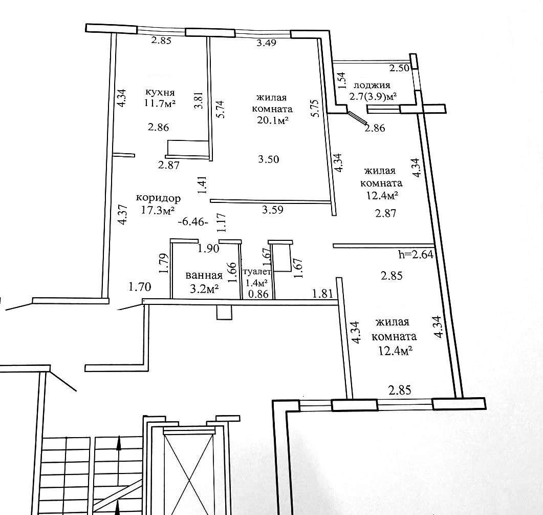 К квартире прилагается подвальная ячейка, размером 3 кв.м.