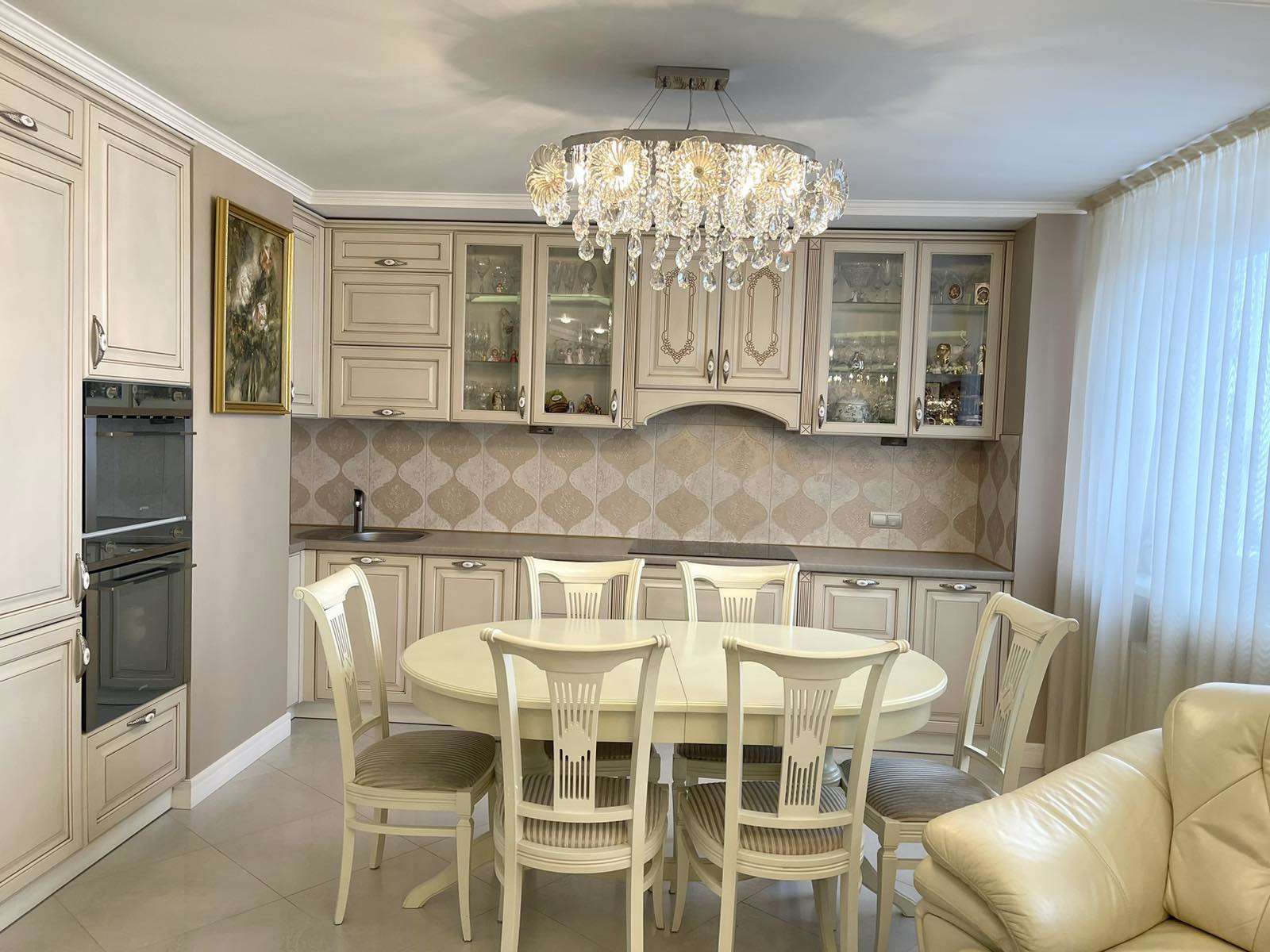 Установлены окна ПВХ и металлическая входная дверь. Межкомнатные двери из натурального дерева. На полу уложена паркетная доска и керамическая плитка. Кухня оборудованная всей необходимой бытовой техникой.