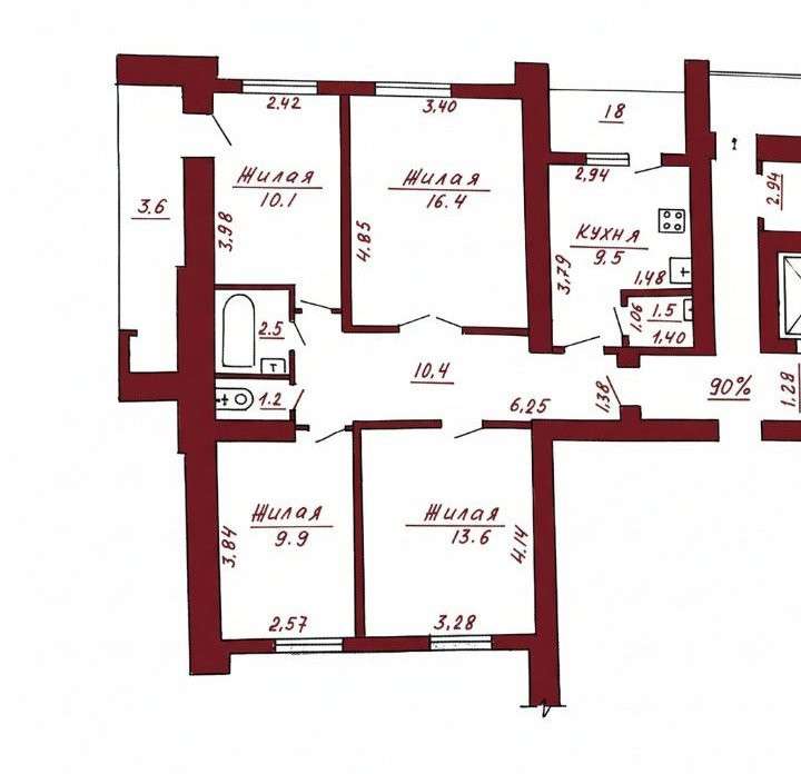 В продаже четырехкомнатная квартира по ул. Горького, 88, 1976 года постройки. Площадь по СНБ 81.88 кв.м., общая 78.1. кв.м., жилая 50. кв.м, кухня 9.5 кв..м. Две застекленные лоджии. Внутренние стены - кирпич. Наружные – кирпичные и ж/б панели. Подвал-кладовка находится на 1-ом этаже (серая дверь на фото), отдельно от других квартир. Стеклопакеты. Хорошее месторасположение, рядом центр города, развитая инфраструктура, сквер-парк для прогулок, Пышки, отличная транспортная развязка, рынок Корона, ФОК Аквацентр, медицинский университет и др.