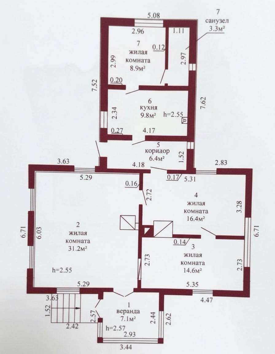 Дом 1-этажный, частично обшит сайдингом, 4 жилые комнаты, совместный санузел, общая площадь дома 91/жилая 76/кухня 8,3 м/кв.