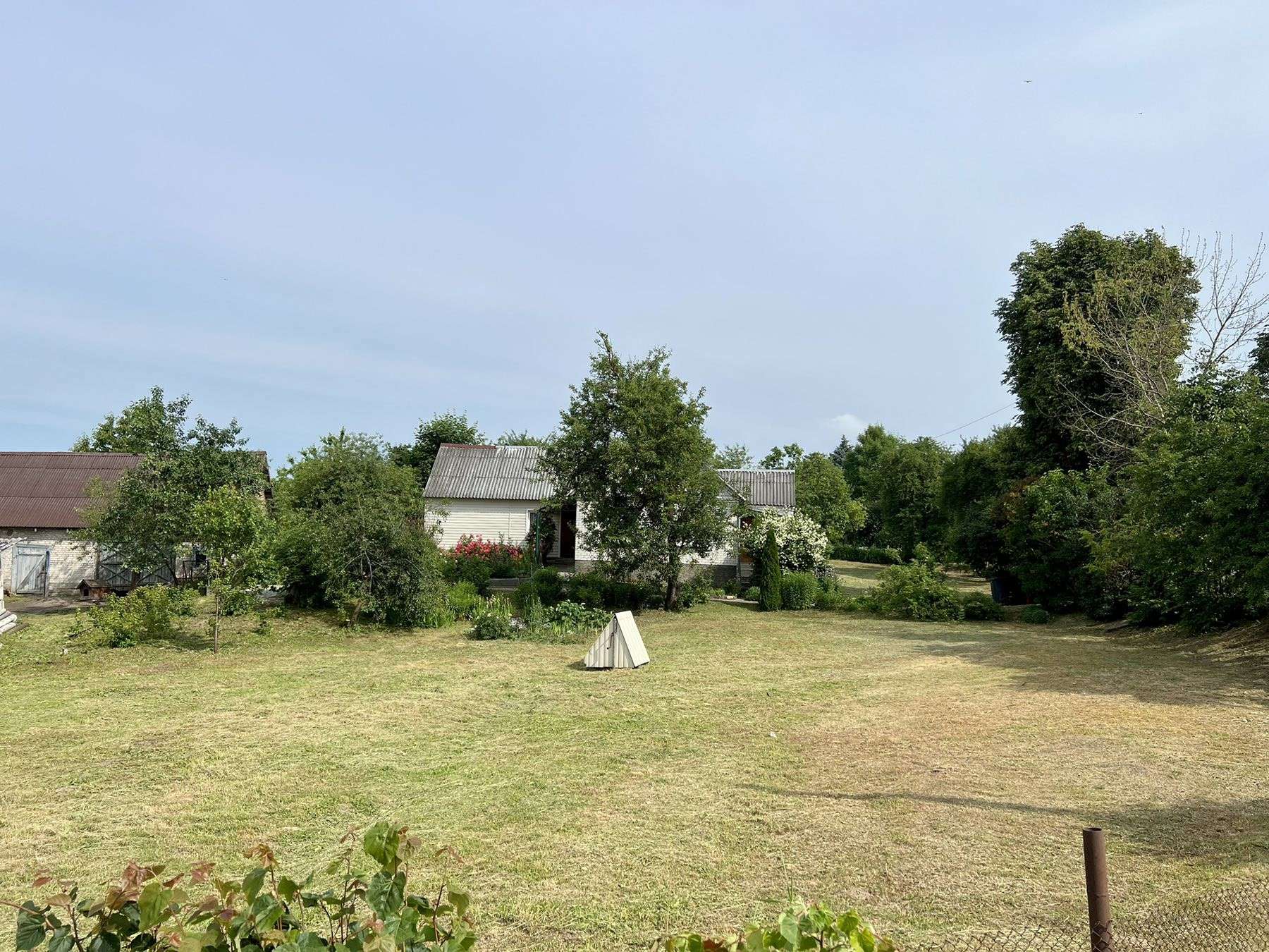 Участок 25 соток, на праве собственности ПНВ, ухоженный, обрабатывается, огорожен со всех сторон сеткой с воротами для авто, имеются плодовые деревья и кустарники. На участке есть кирпичная хозпостройка и гараж из блоков. Так же имеется большой подвал в пристройке.