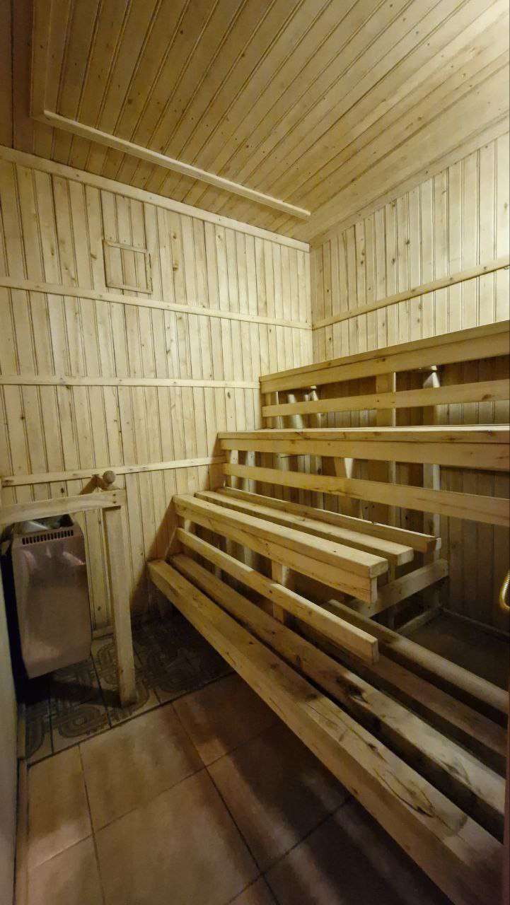 В доме имеется баня, бильярдная, гараж в подвальном помещении, три санузла, два камина, природный газ, центральная канализация, водопровод. Крыша - металлочерепица, пластиковые стеклопакеты. Участок 6,94 соток облагорожен и огорожен забором, практически прямоугольный. Земля в пожизненно наследуемом владении. Высажены туи, сосны, плодовые деревья. Двор выложен тротуарной плиткой. На участке организована зона барбекю, установлен фонтан, бассейн и беседка.
