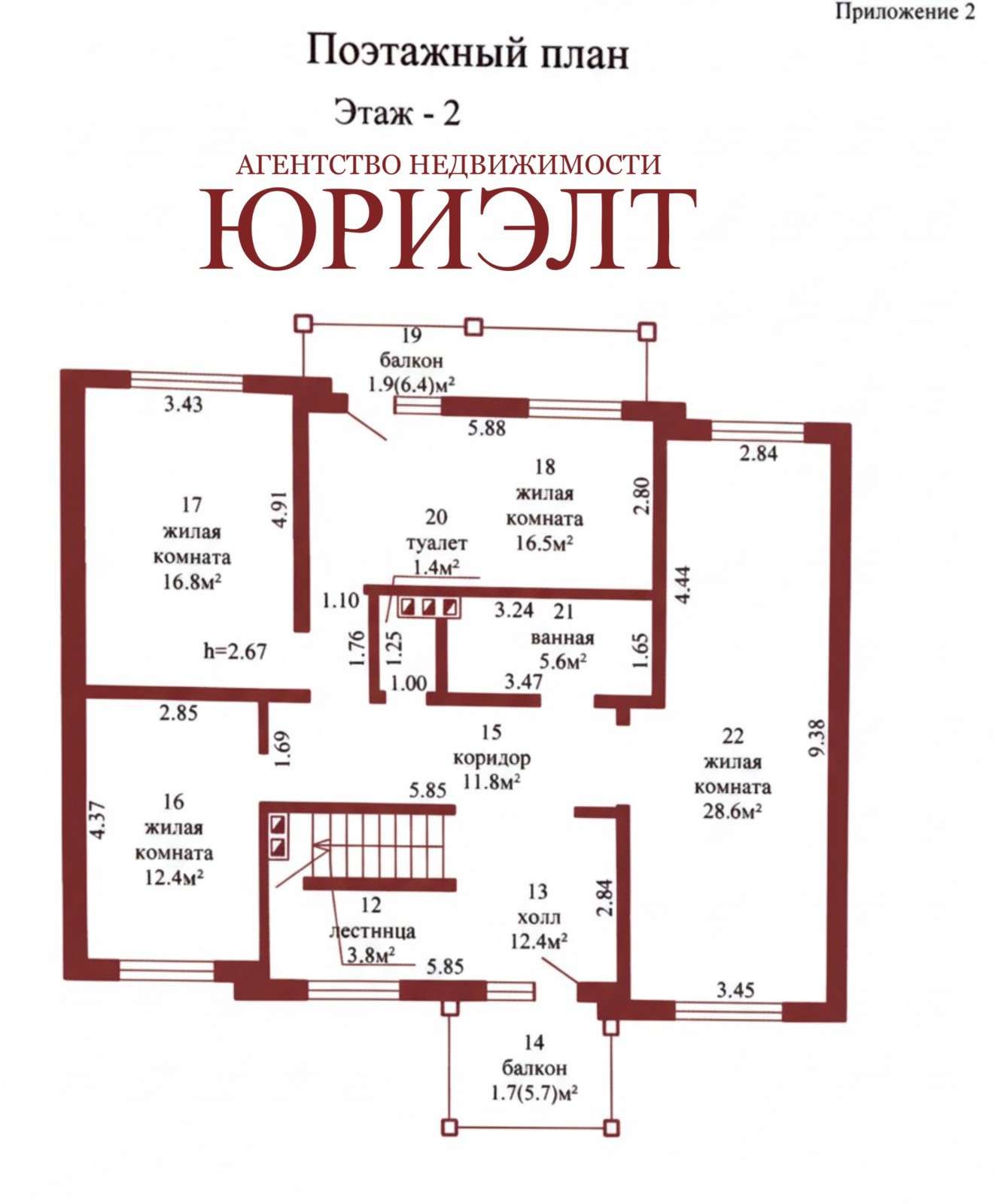 Характеристики дома: общая площадь – 216,6 м2, жилая площадь – 134,3 м2, кухня – 16,4 м2, высота потолка 2,95 м. Дом состоит из двух полноценных этажей, оборудован двумя балконами по 6,4 м2. На цокольном этаже устроены гараж, топочная и кладовые. Количество жилых комнат на первом этаже 3, на втором - 4. В доме 2 санузла, которые расположены на каждом жилом этаже. Рациональная планировка пространства обеспечит комфортное проживание для всей семьи.